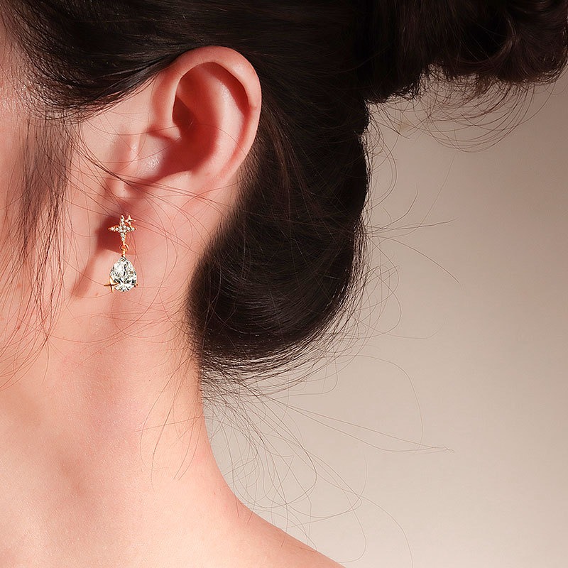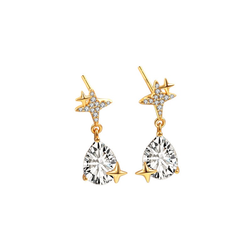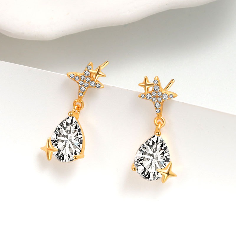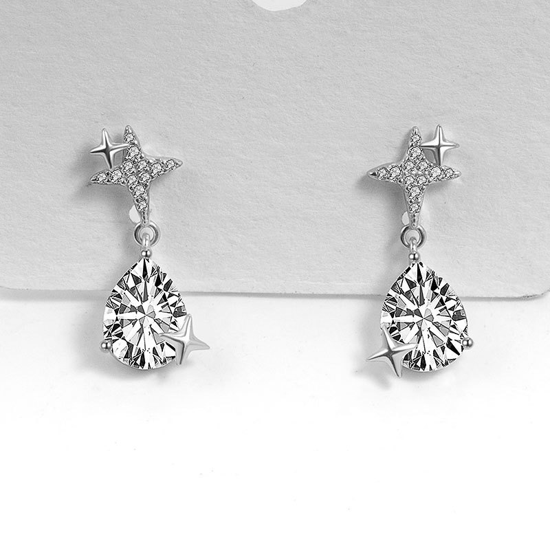 S925 sterling silver stud earrings water drop zircon star earrings