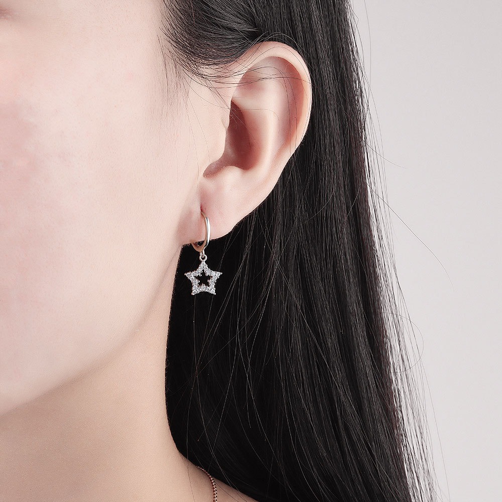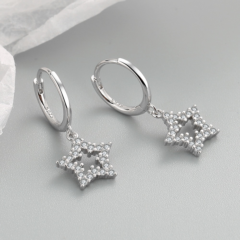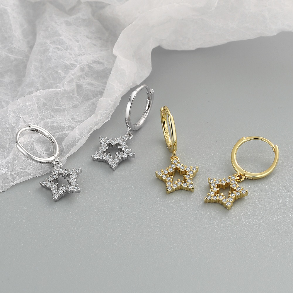 S925 sterling silver stud earrings with five-pointed star earrings