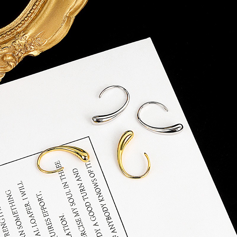 S925 sterling silver stud earrings glossy C-shaped buckle earrings