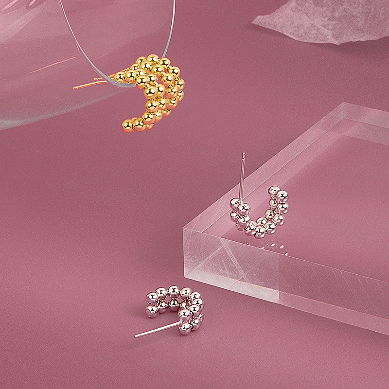 S925 sterling silver stud earrings with two rows of beaded earrings