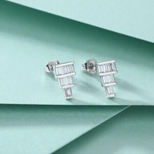 S925 sterling silver stud earrings women’s fashion ladder zircon earrings