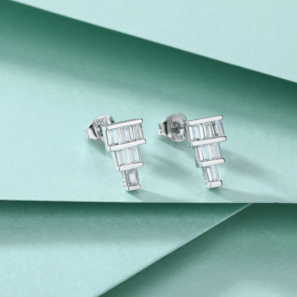 S925 sterling silver stud earrings women’s fashion ladder zircon earrings