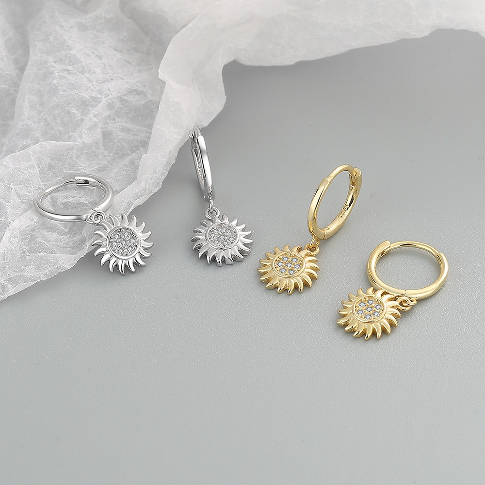 S925 sterling silver stud earrings zircon sunflower earrings