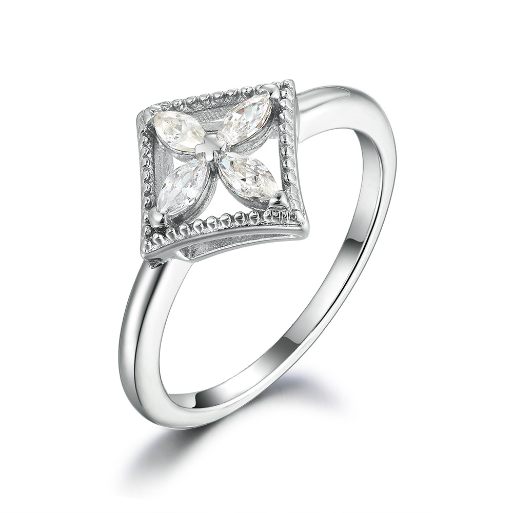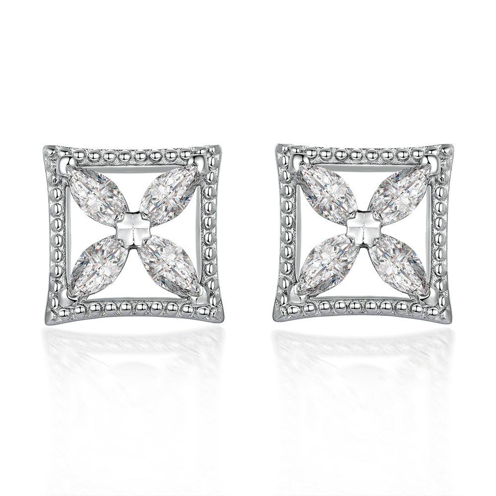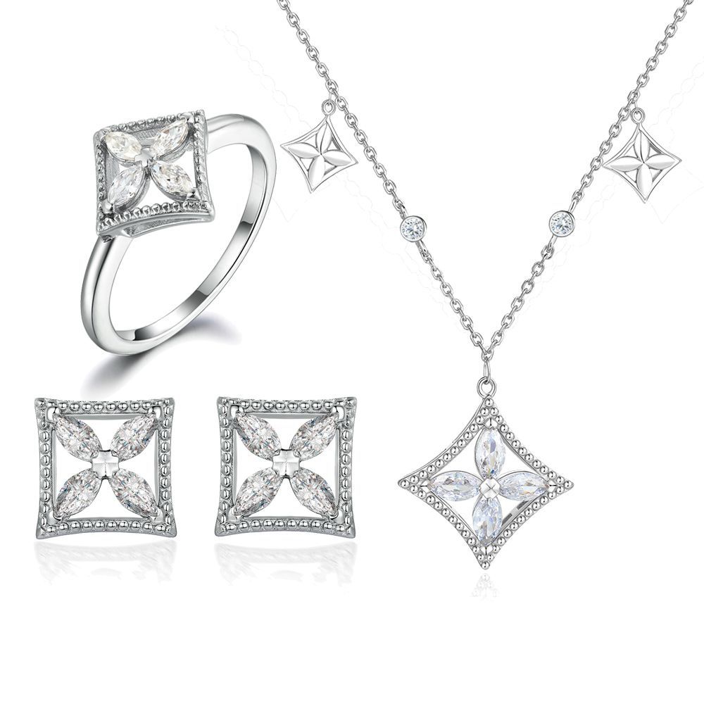 S925 sterling silver jewelry set four-piece square diamond ring earrings necklace fashion bracelet