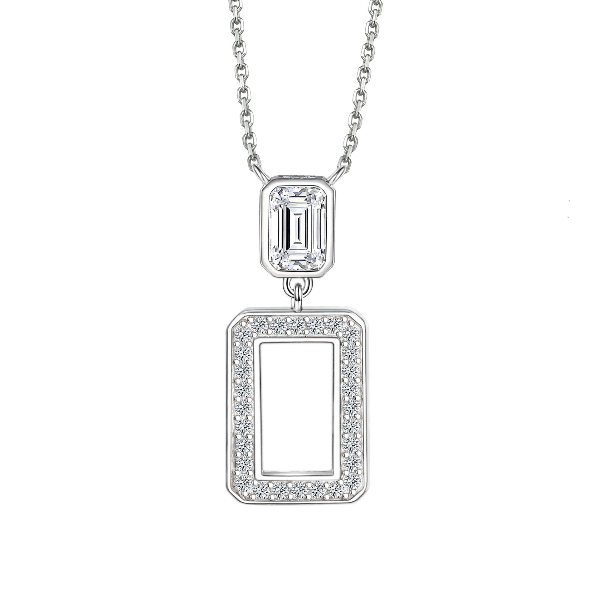 S925 sterling silver tassel necklace women’s high-end sense European and American simple fashion square diamond pendant silver necklace