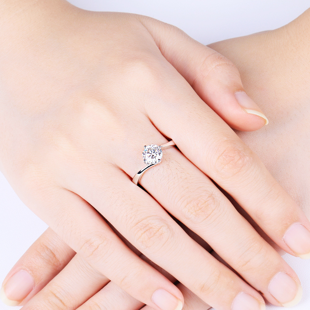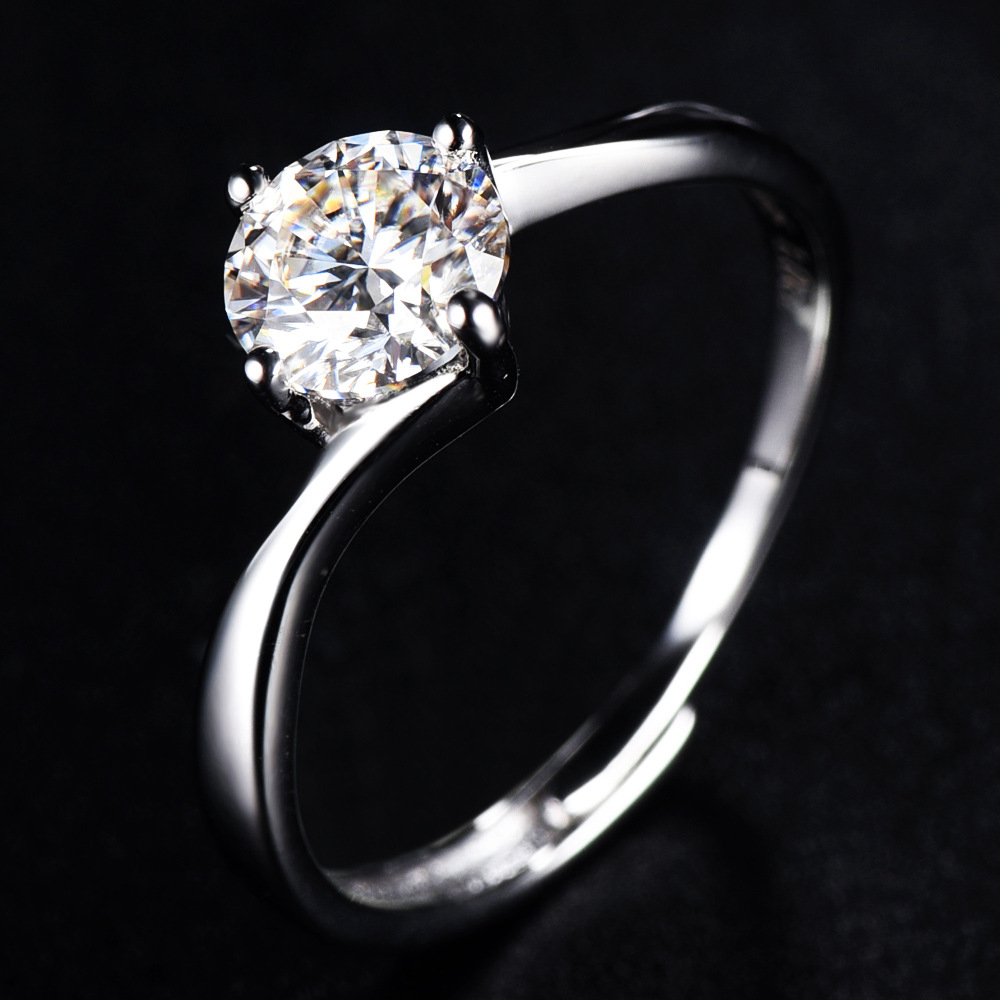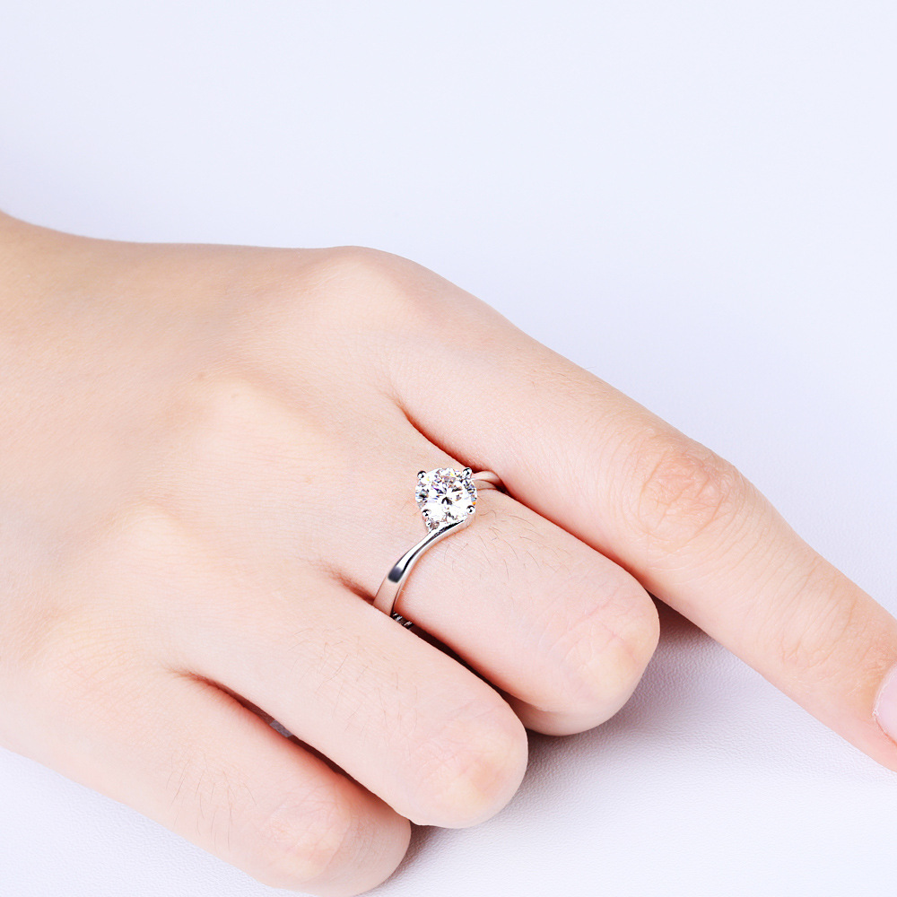 S925 sterling silver twisted arm four-claw open ring light luxury European and American diamond rings moissanite over diamond pen wedding rings women’s rings