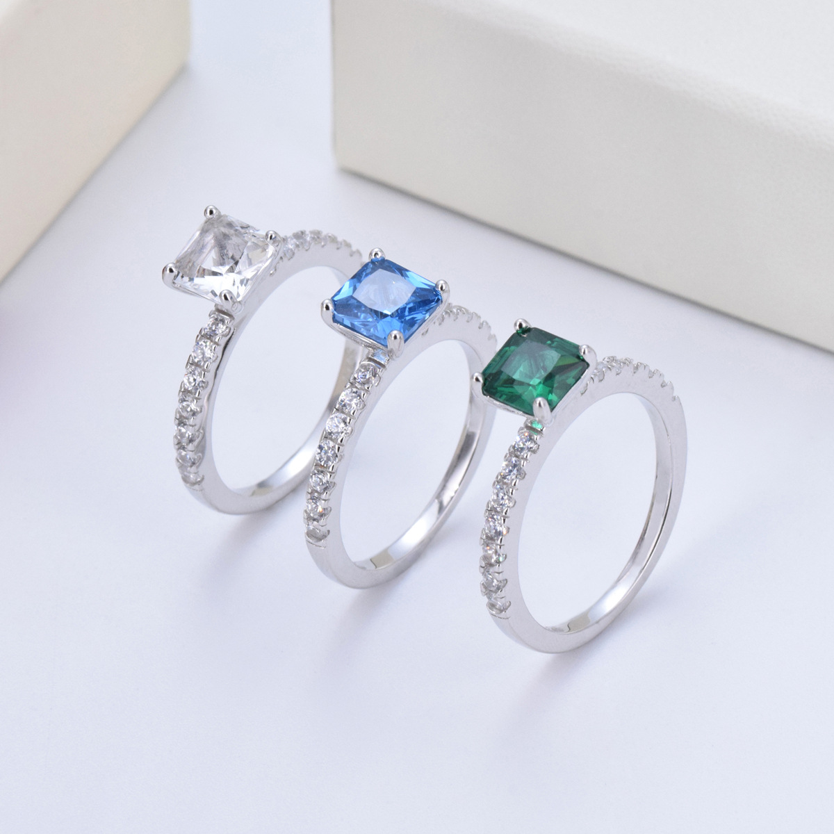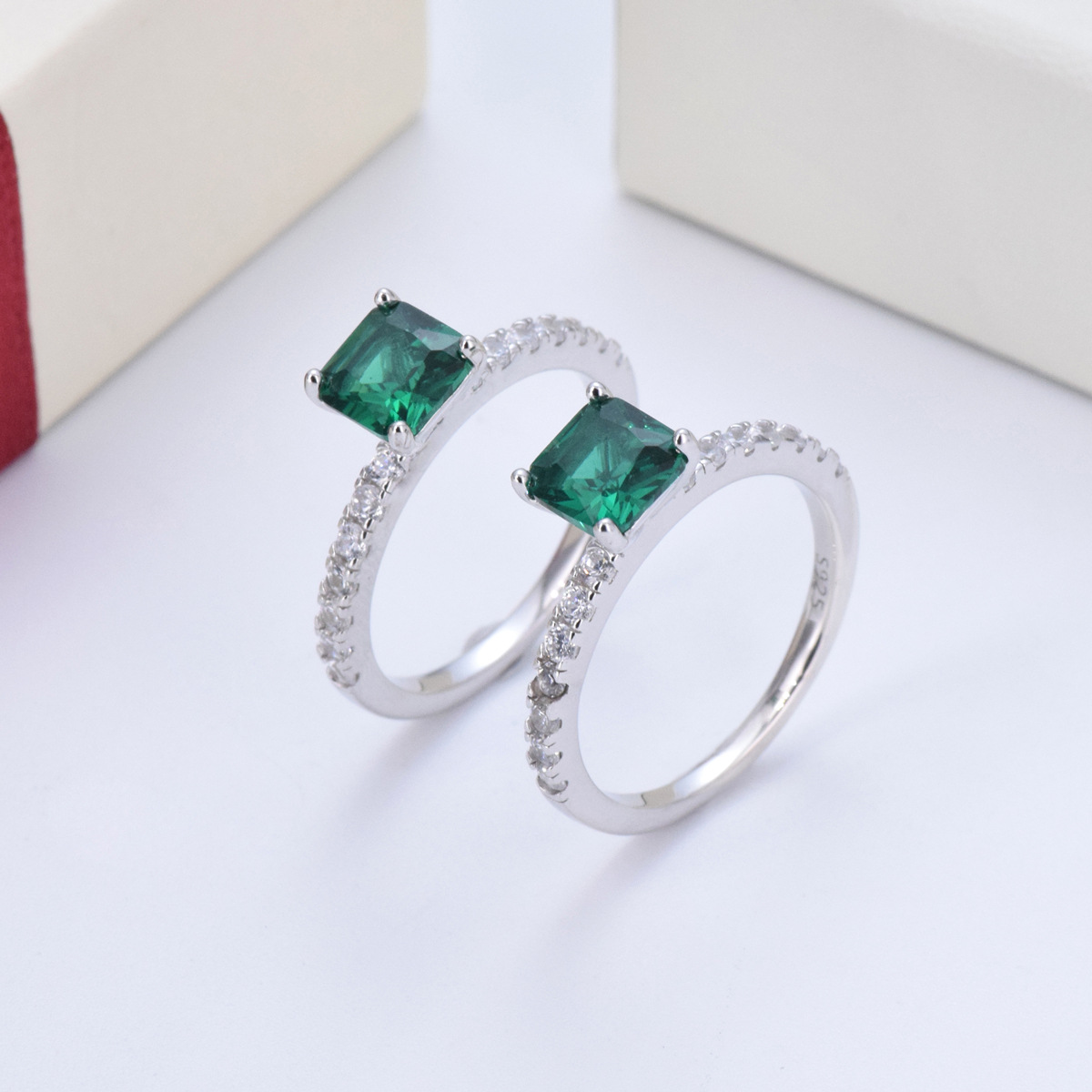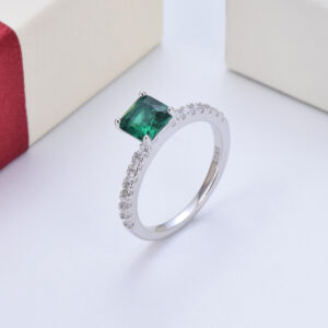 S925 sterling silver vintage green square diamond princess ring four claw inlaid zircon full diamond ring