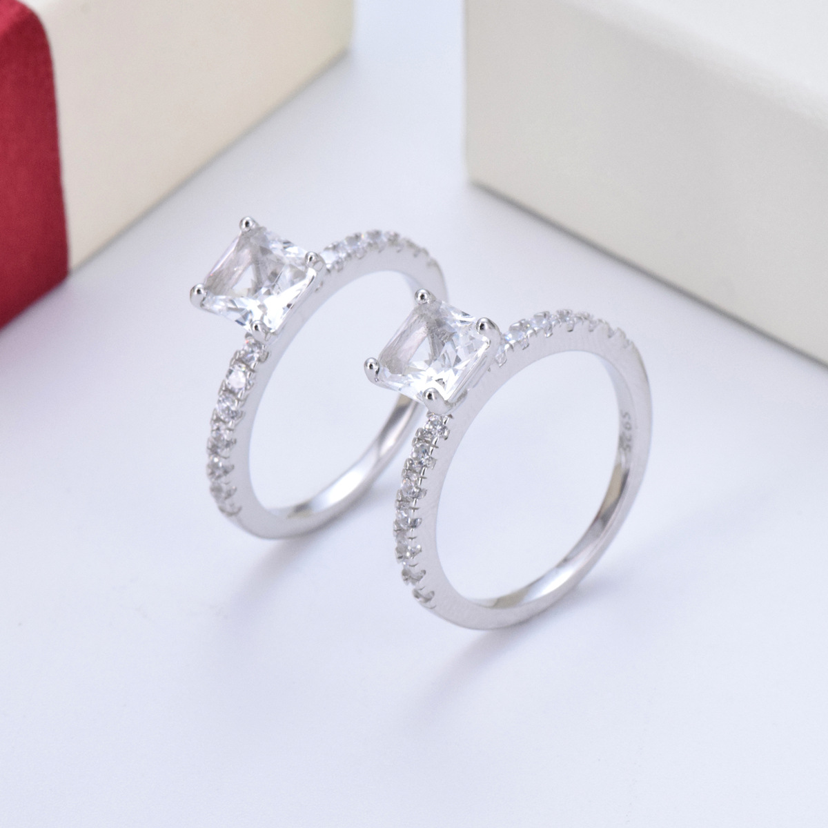 S925 sterling silver jewelry set four-piece square diamond ring earrings necklace fashion bracelet