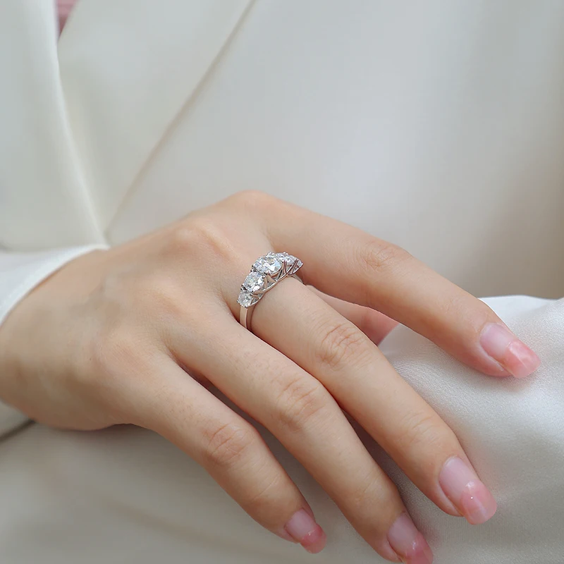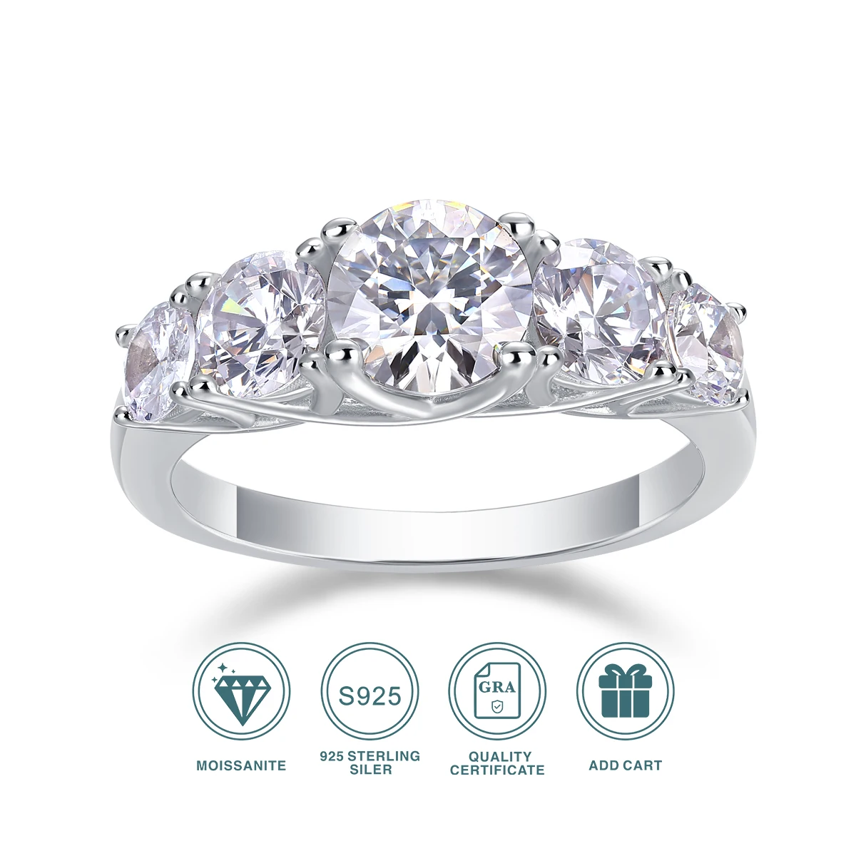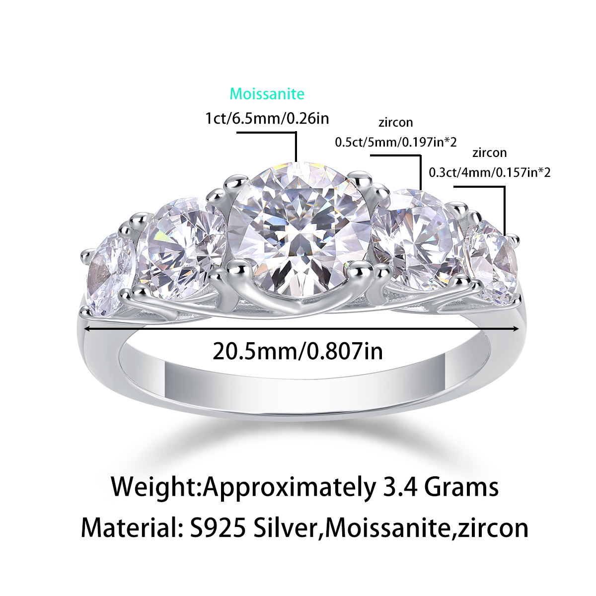 S925 Sterling Silver Wedding Ring 6.5mm Moissanite Diamond Engagement Ring