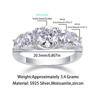 Main Stone Weight/Ring: Moissan Diamond 1 carats
