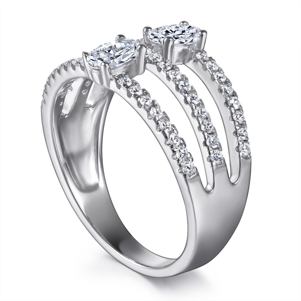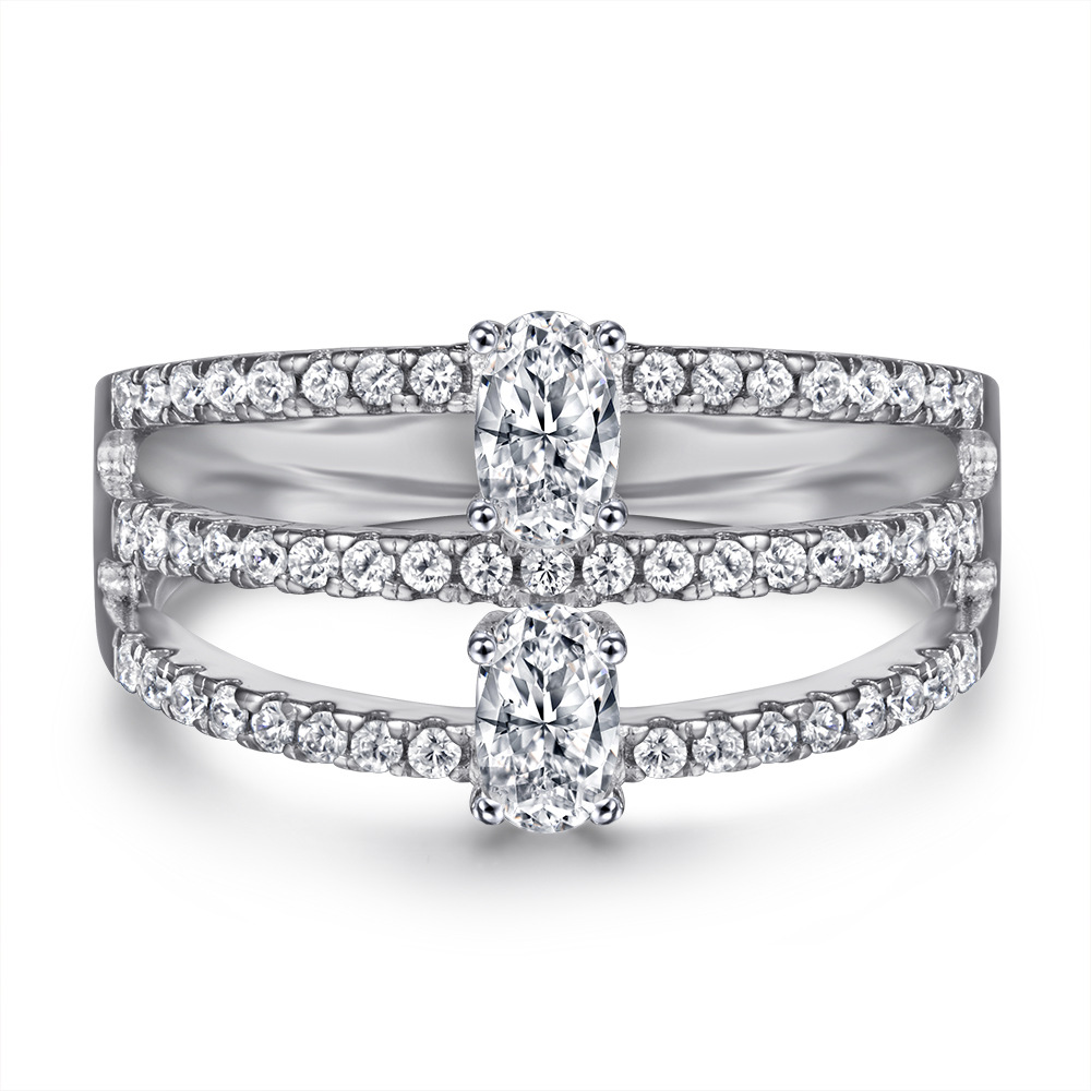 S925 Sterling Silver Wide Face Three-Band Ring Women’s Row Ring Micro Set Zirconia Carat Engagement Ring