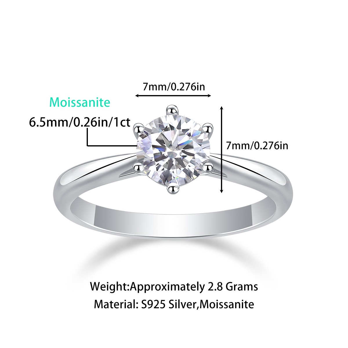 S925 Sterling Silver Women 1ct Bling Moissanite Engagement Ring For Woman