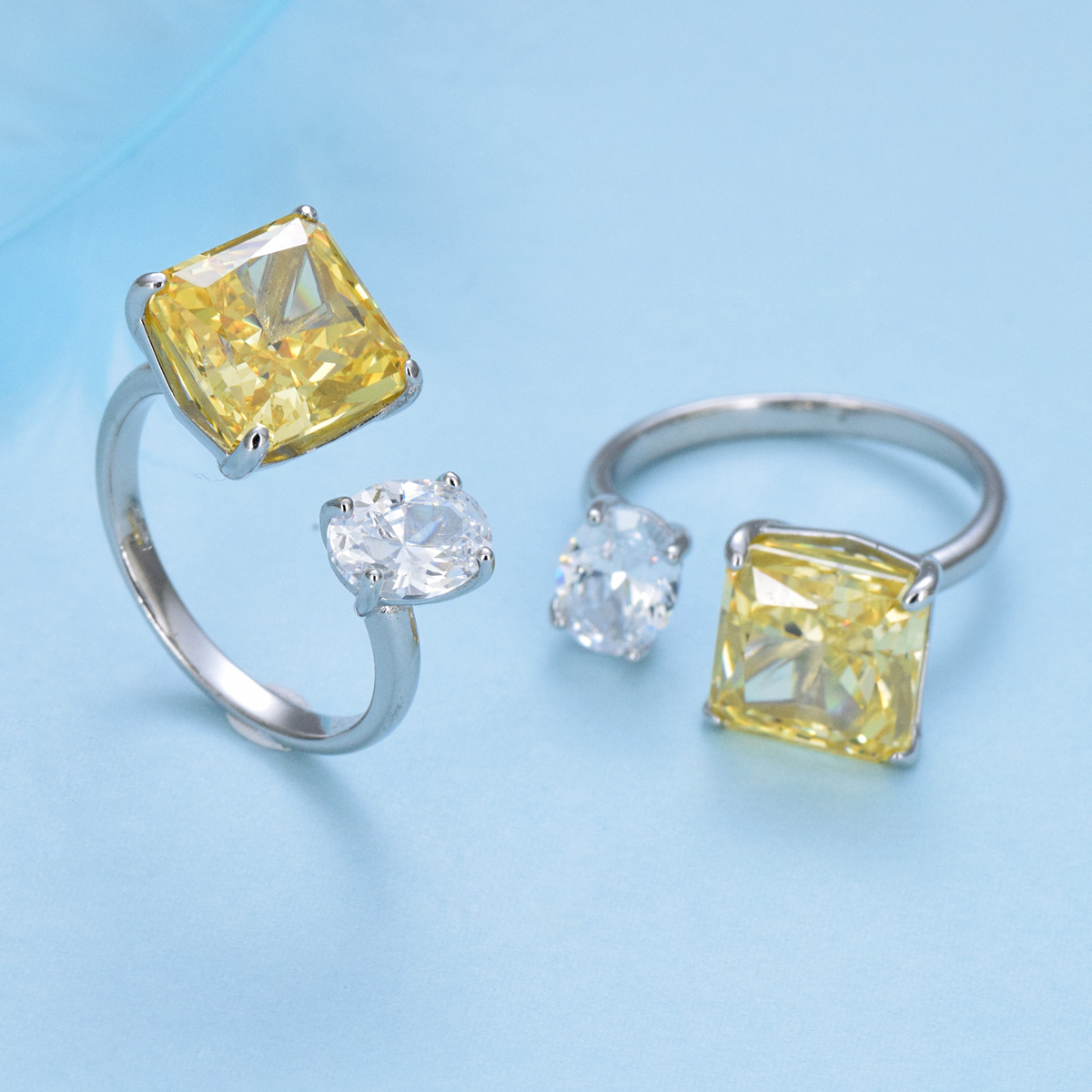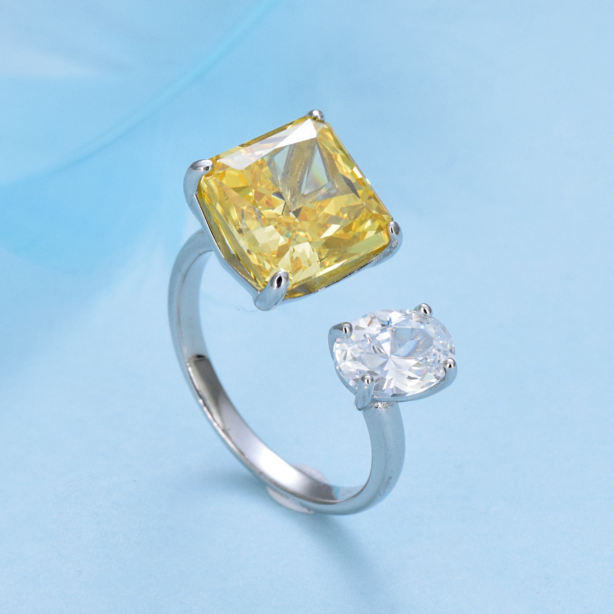 S925 sterling silver women’s ring four prongs set ice flower cutting zircon ring