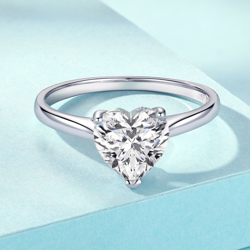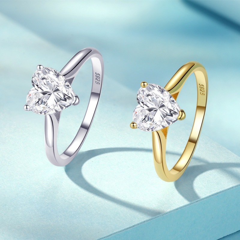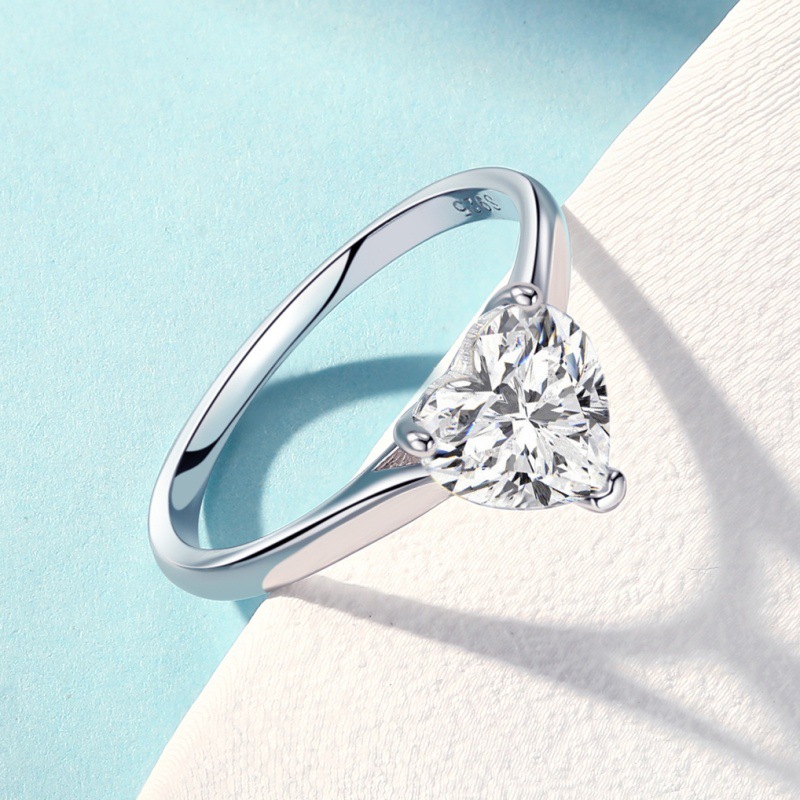 S925 sterling silver women’s ring six prongs heart-shaped zircon ring
