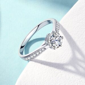S925 sterling silver women’s ring six prongs round zircon ring