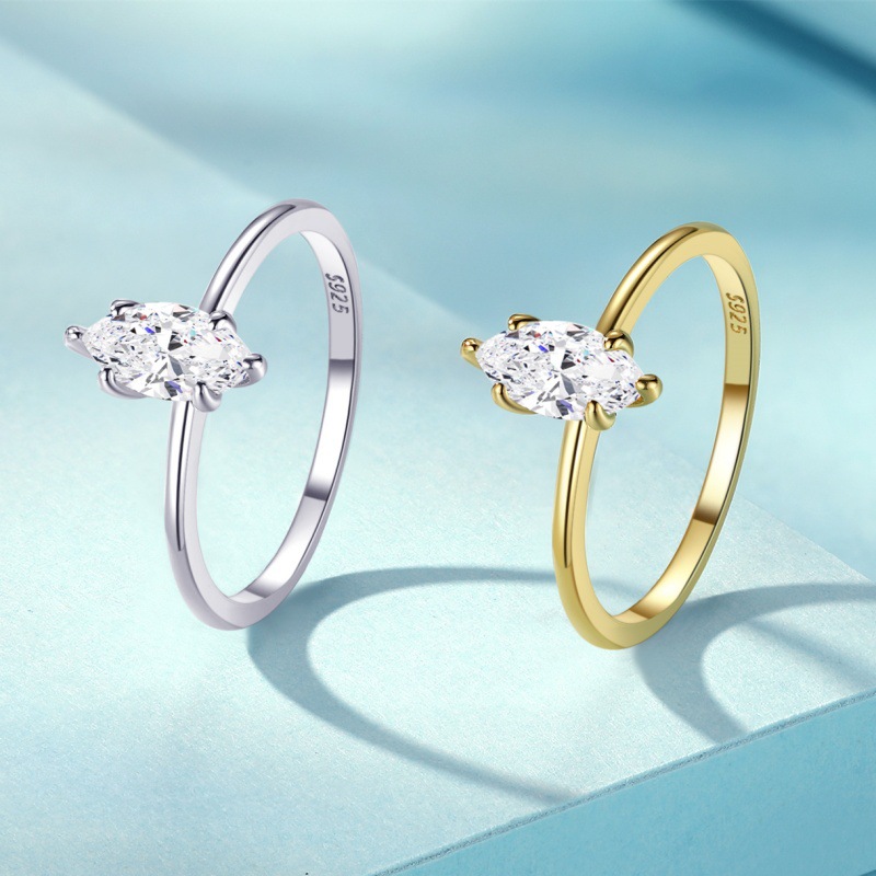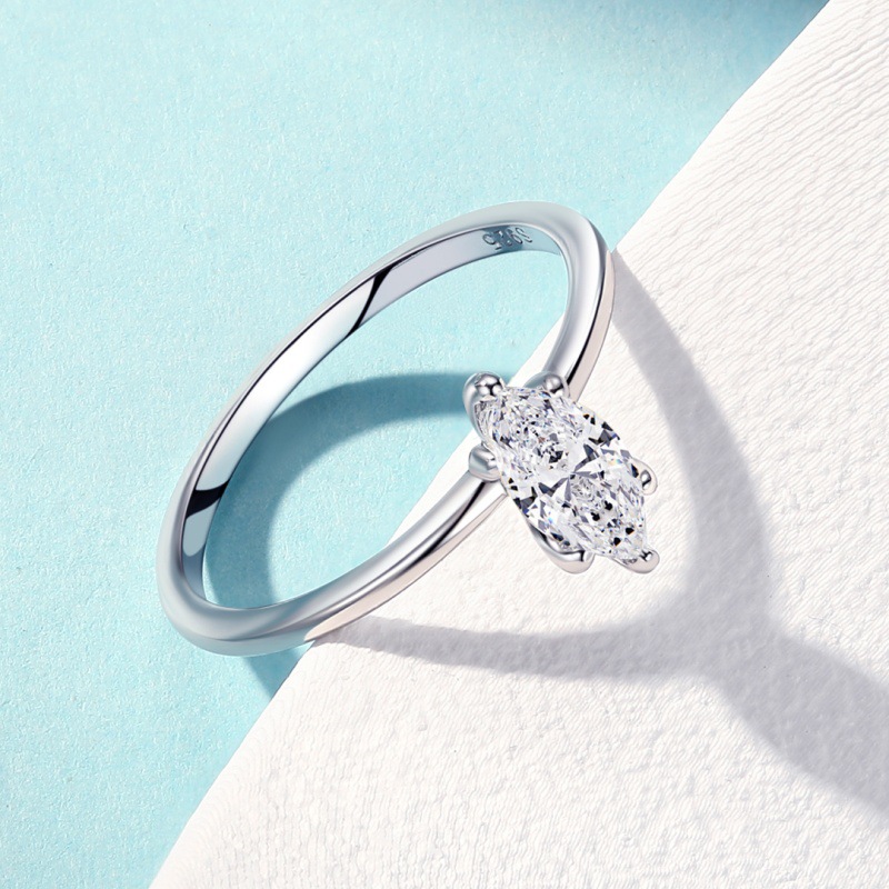 S925 sterling silver women’s ring six prongs pear-shaped zircon ring