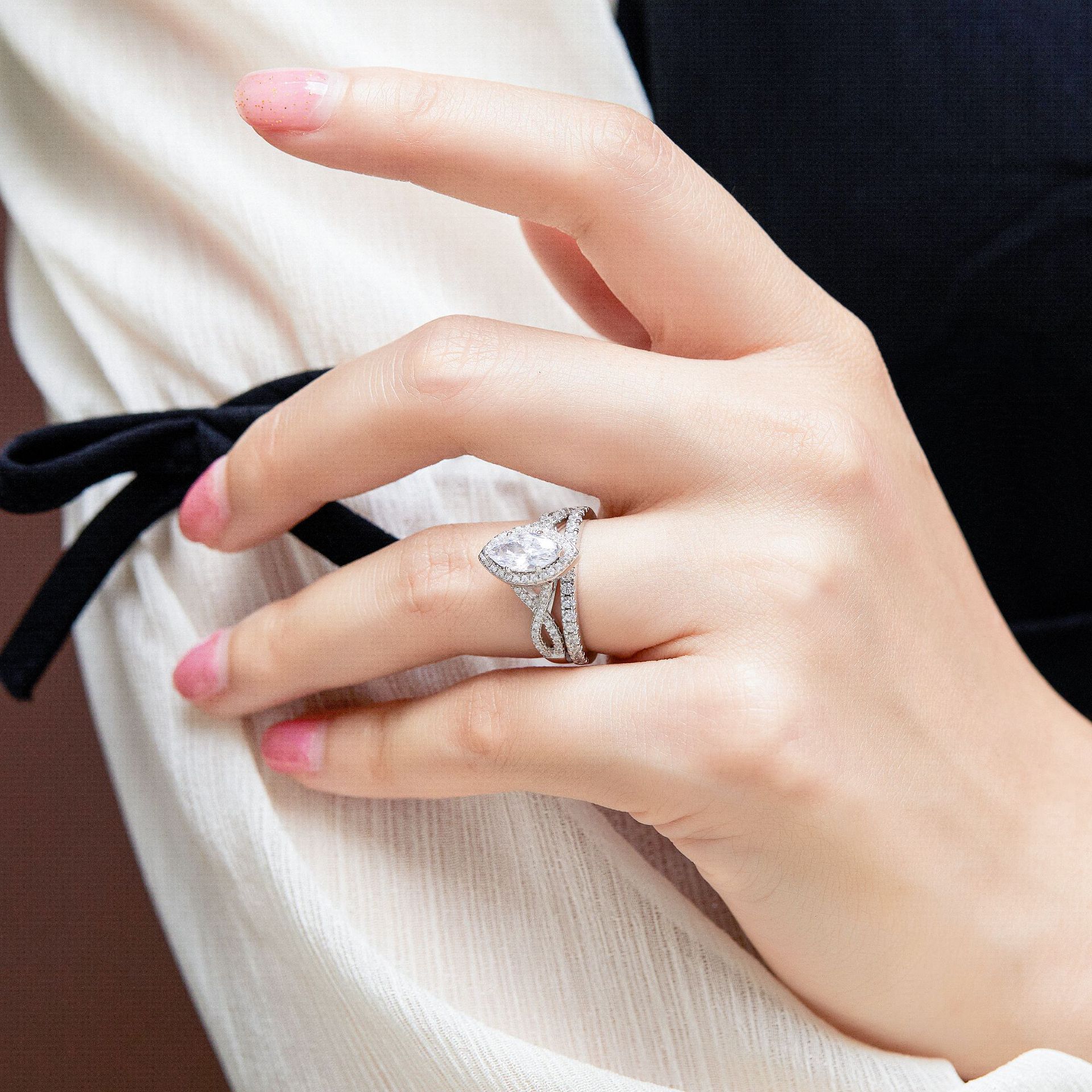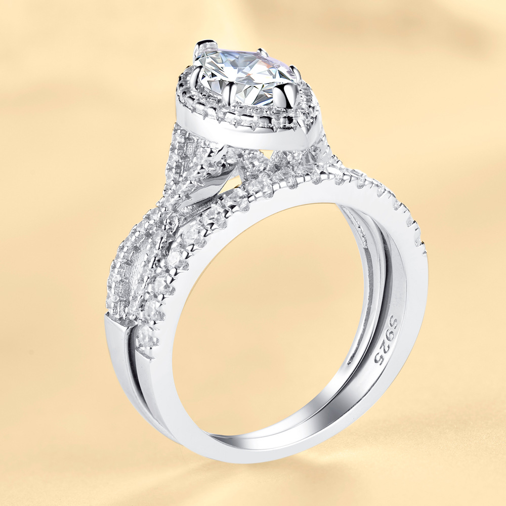 Sterling Silver Ring 925 Silver Wedding Ring Teardrop Zircon 1.5ct Diamond Ring