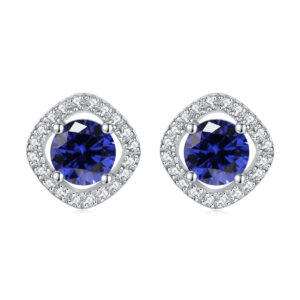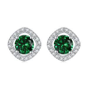 S925 sterling silver zircon diamond gemstone stud earrings European and American cross-border full diamond square earrings silver earrings luxury wholesale