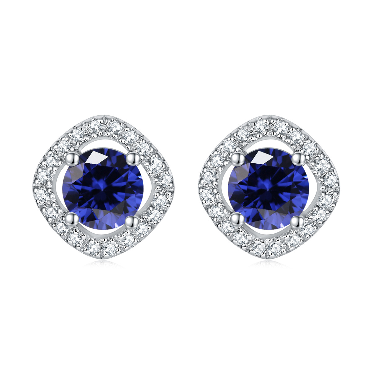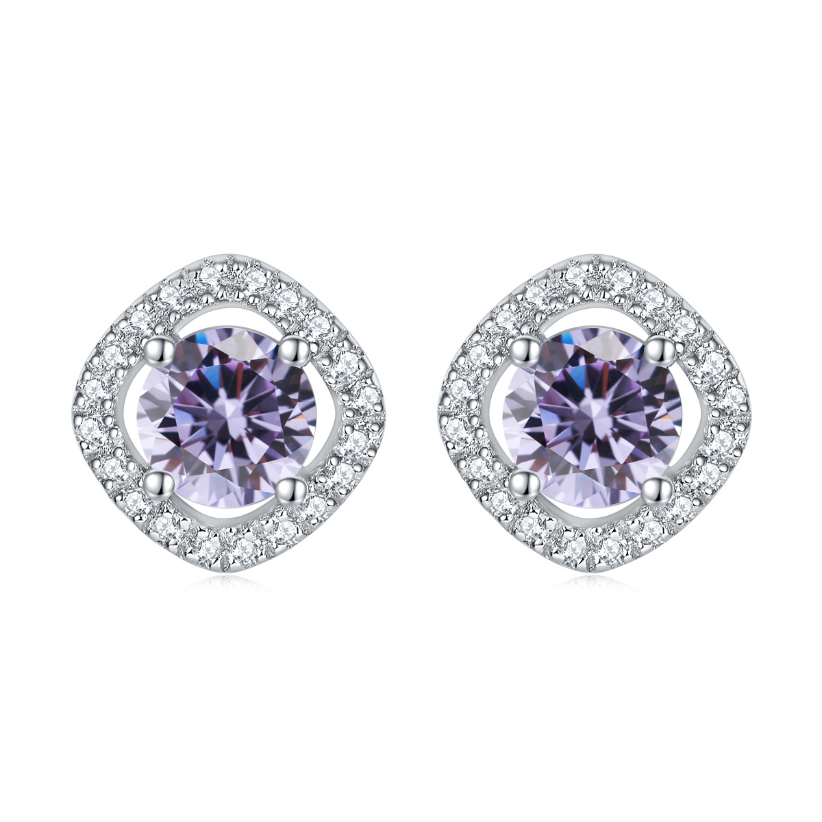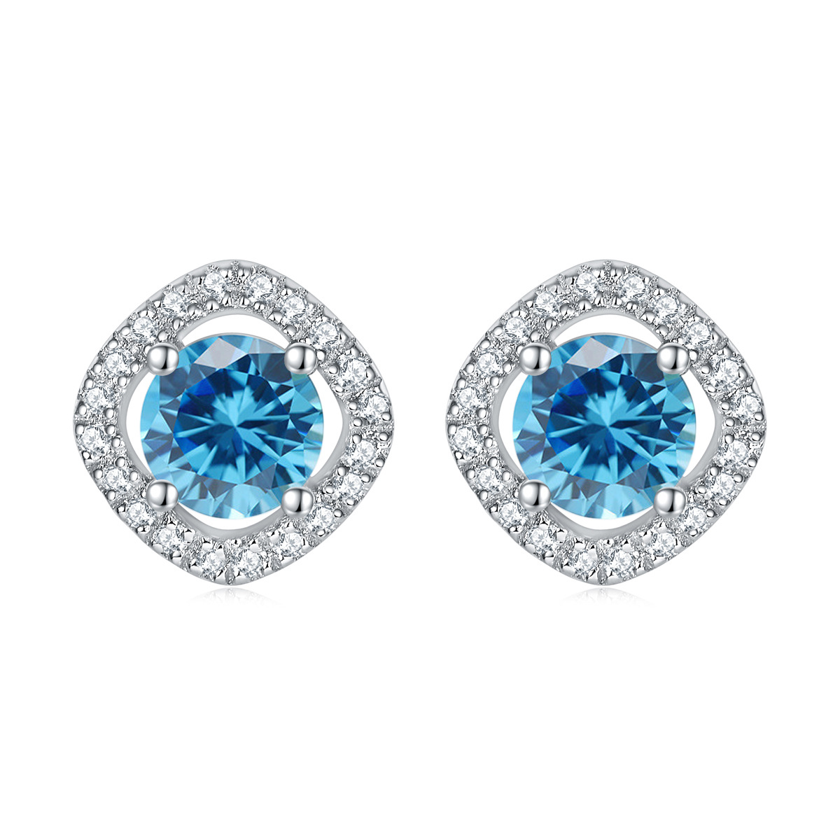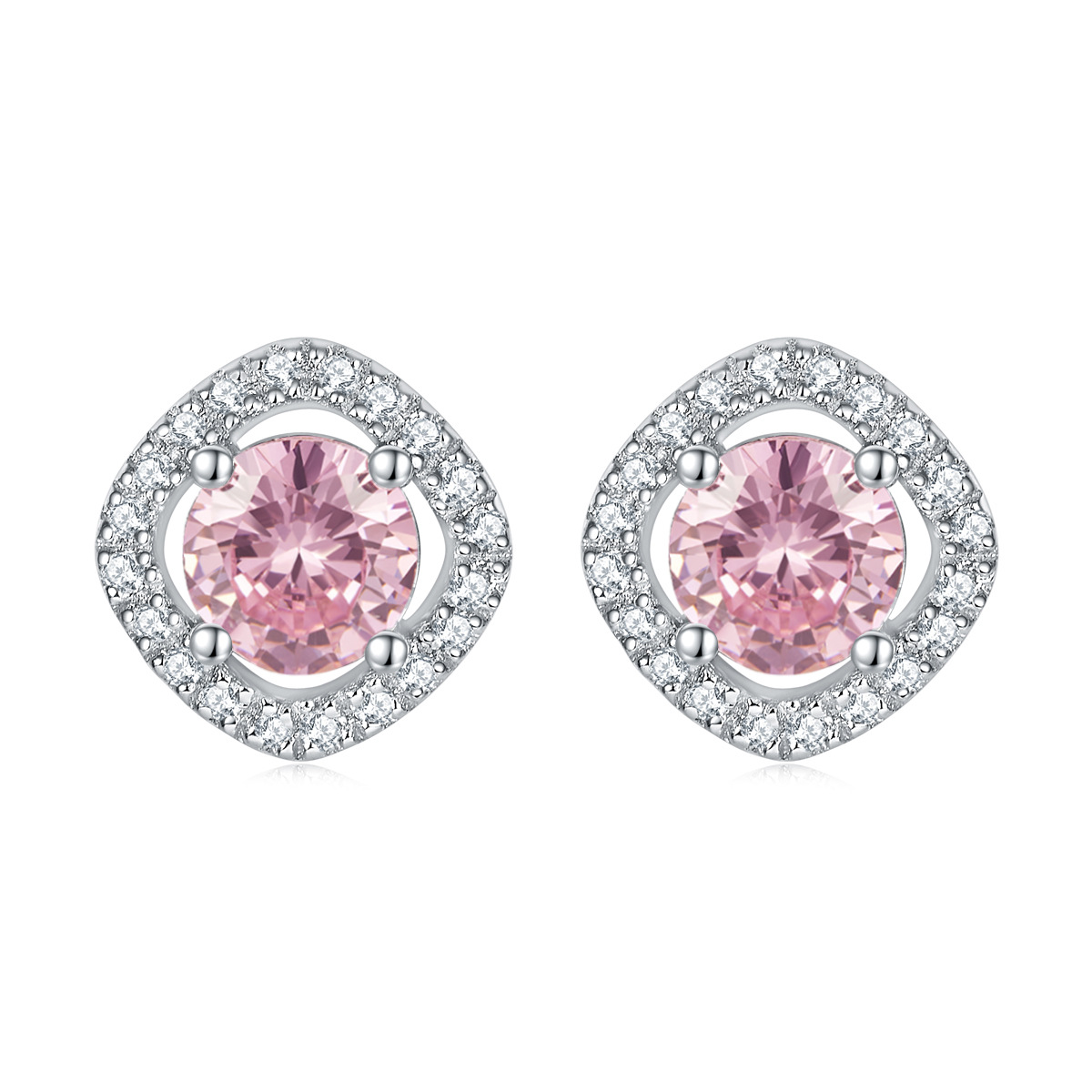 S925 sterling silver zircon diamond gemstone stud earrings European and American cross-border full diamond square earrings silver earrings luxury wholesale