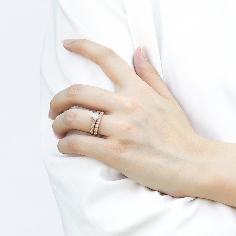 S925 sterling silver zircon ring women’s combination ring set six-prong ring