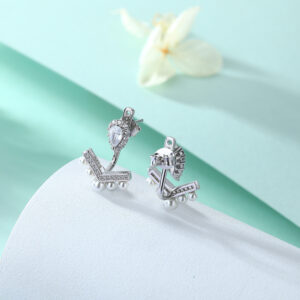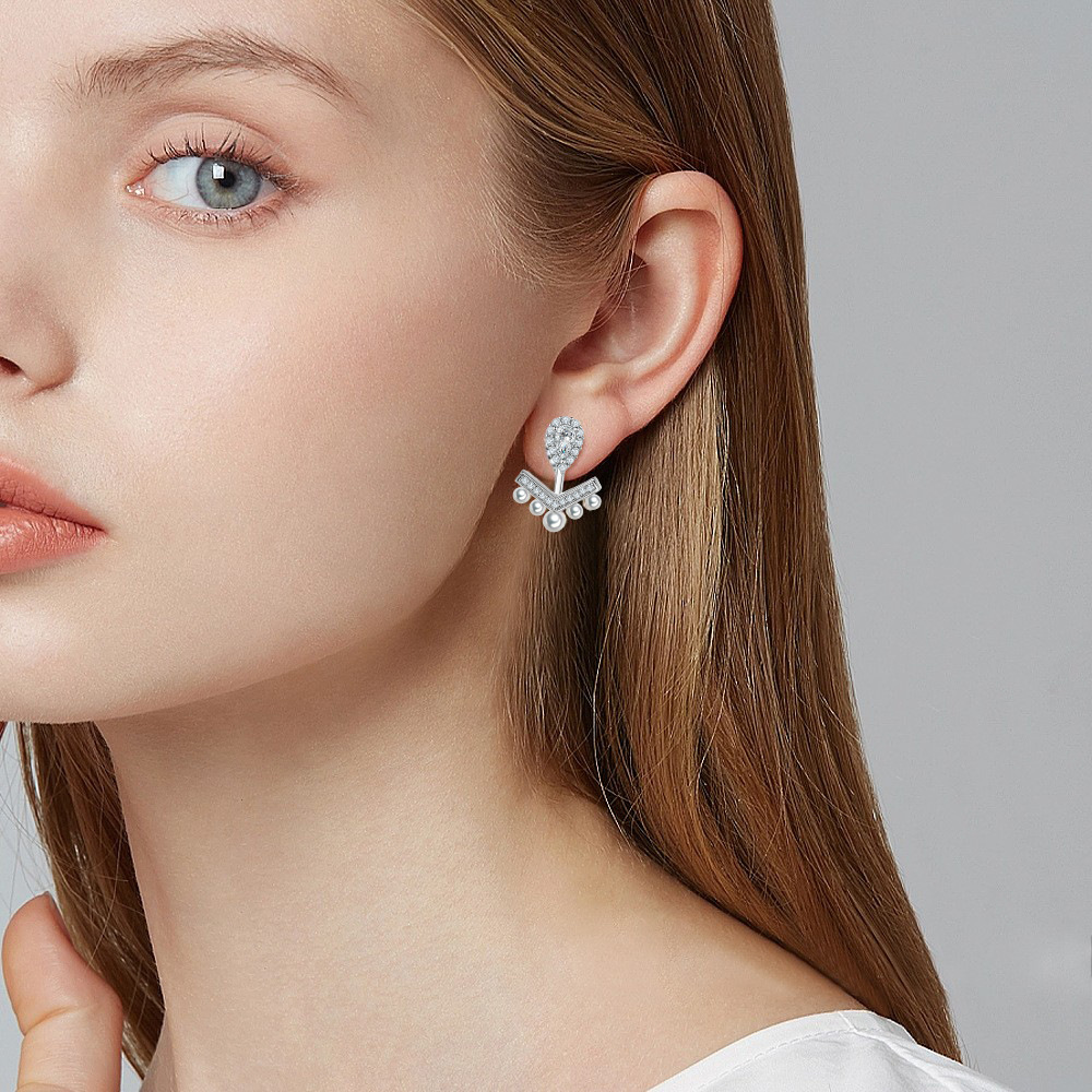 S925 sterling silver zircon shell bead earrings tassel silver earrings European and American fashion cross-border crown V-shaped pearl stud earrings wholesale