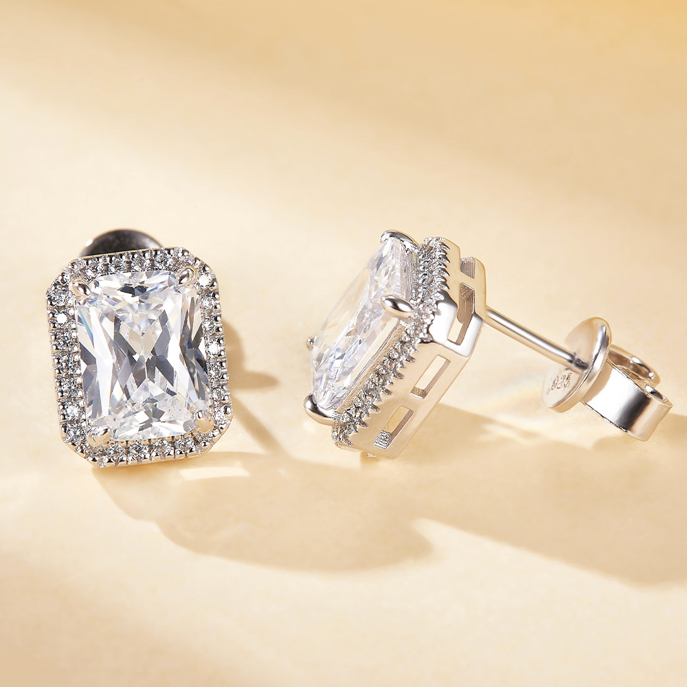 S925 sterling silver zircon square diamond ring square pendant stud earrings necklace women’s luxury jewelry set of 3 pieces