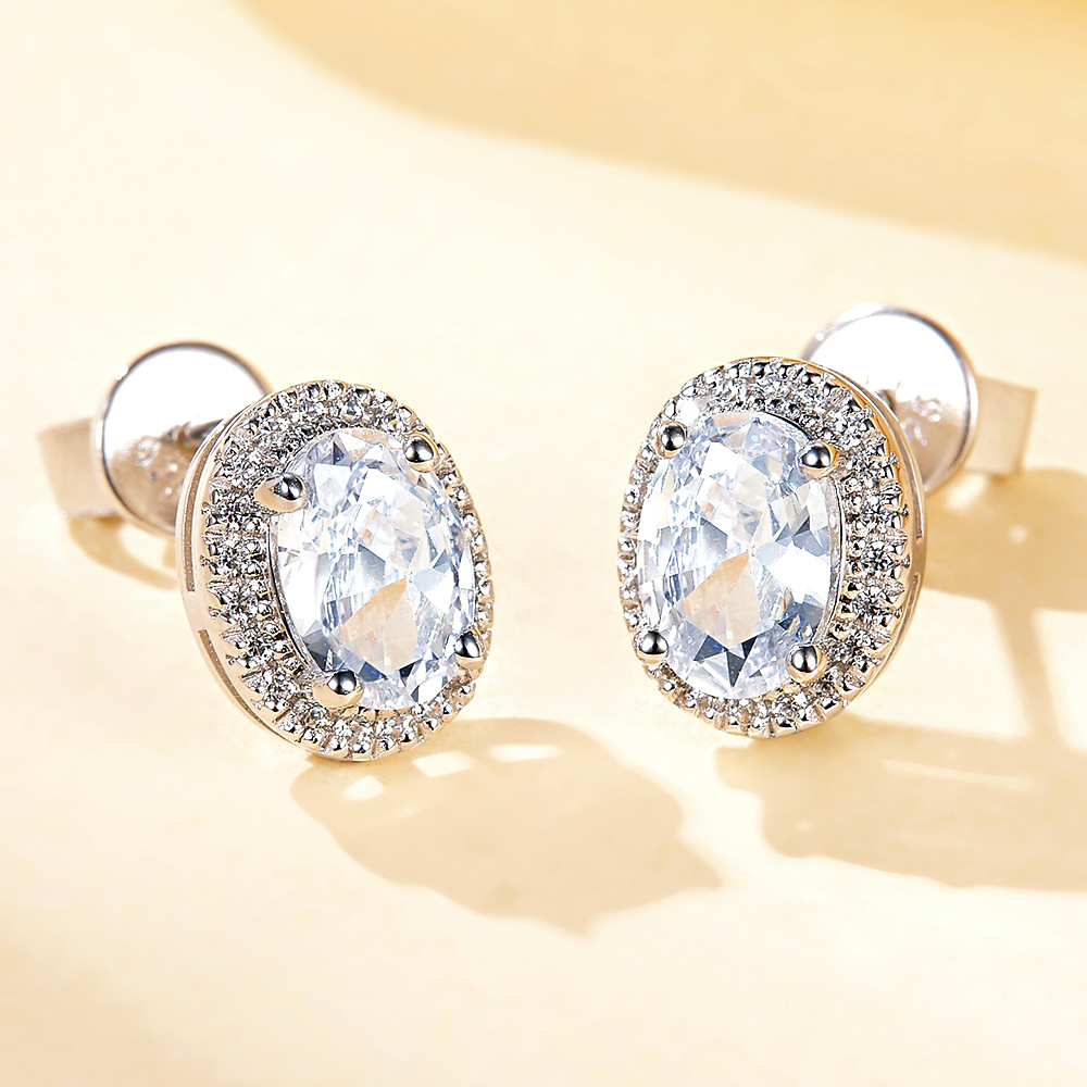 S925 Sterling Silver Zircon Three Ring Ring Oval Pendant Necklace Stud Earrings Niche Jewelry Set of Three