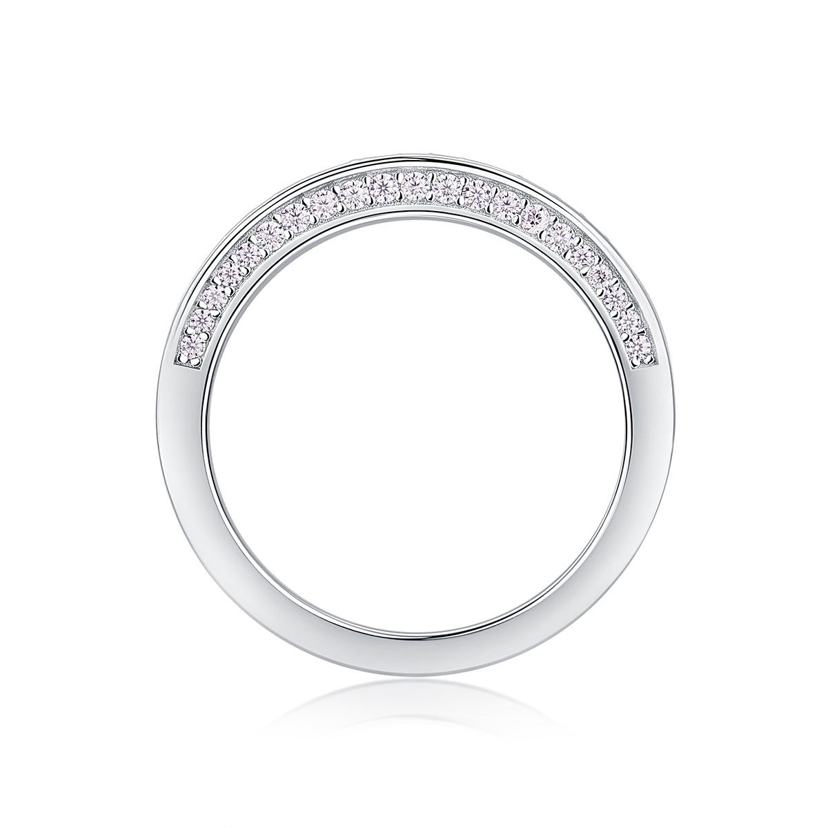 S925 Sterling Silver Pink Row Diamonds Ring Round Earrings Necklace 3-piece Jewelry set