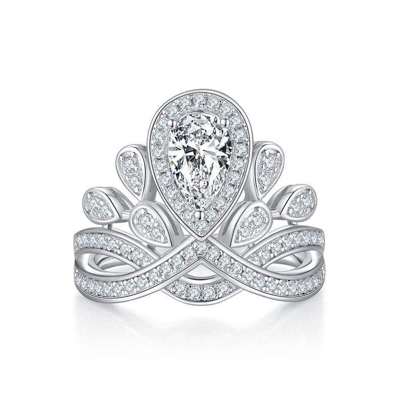 S925 Sterling Silver Jewelry Set of Three Crown Ring Stud Earrings Necklace Silver Jewelry Set