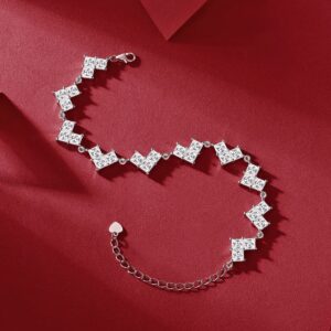 Silver 925 Diamond Brilliant Cut 1 Carat D Color Moissanite Shape Bracelet Cute Gemstone Chain