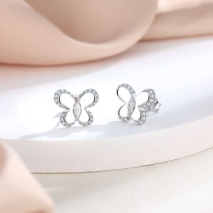 Silver butterfly stud earrings zircon S925 silver bow earrings