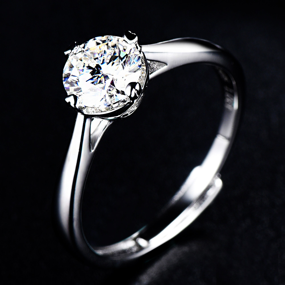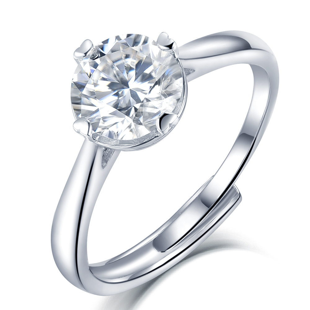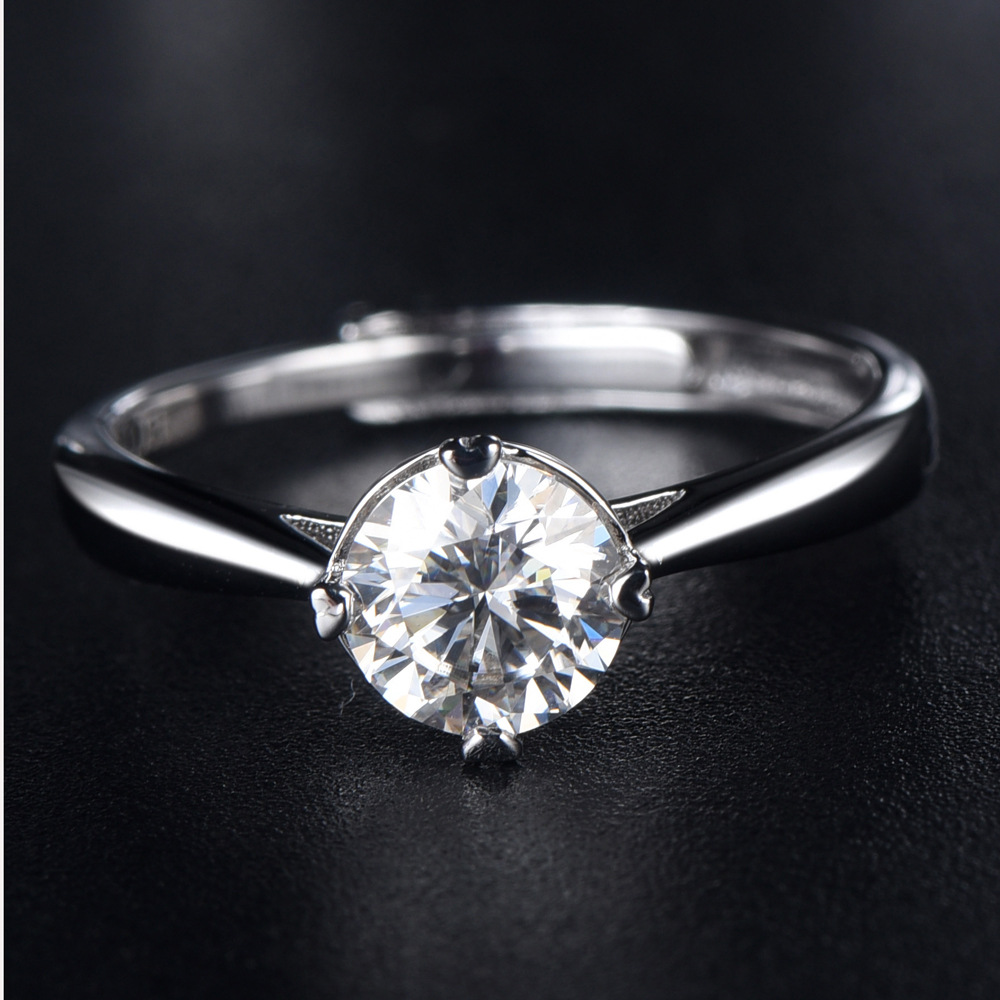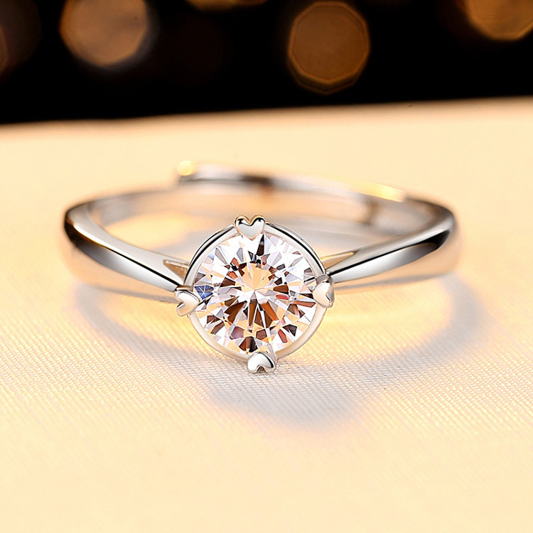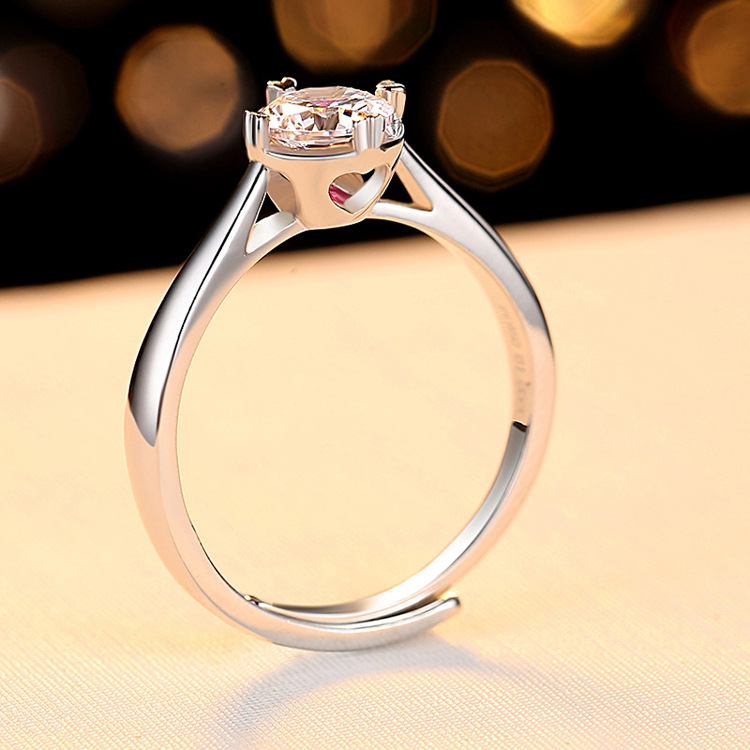 Silver jewelry s925 sterling silver open moissanite diamond ring Korean version simple women’s four-prong moissanite engagement diamond ring