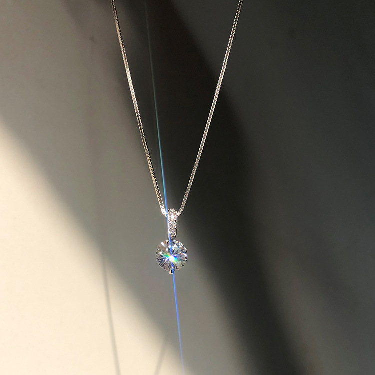 Simple 925 silver zircon pendant simulation diamond necklace luxury ins style European and American hot sterling silver clavicle chain wholesale