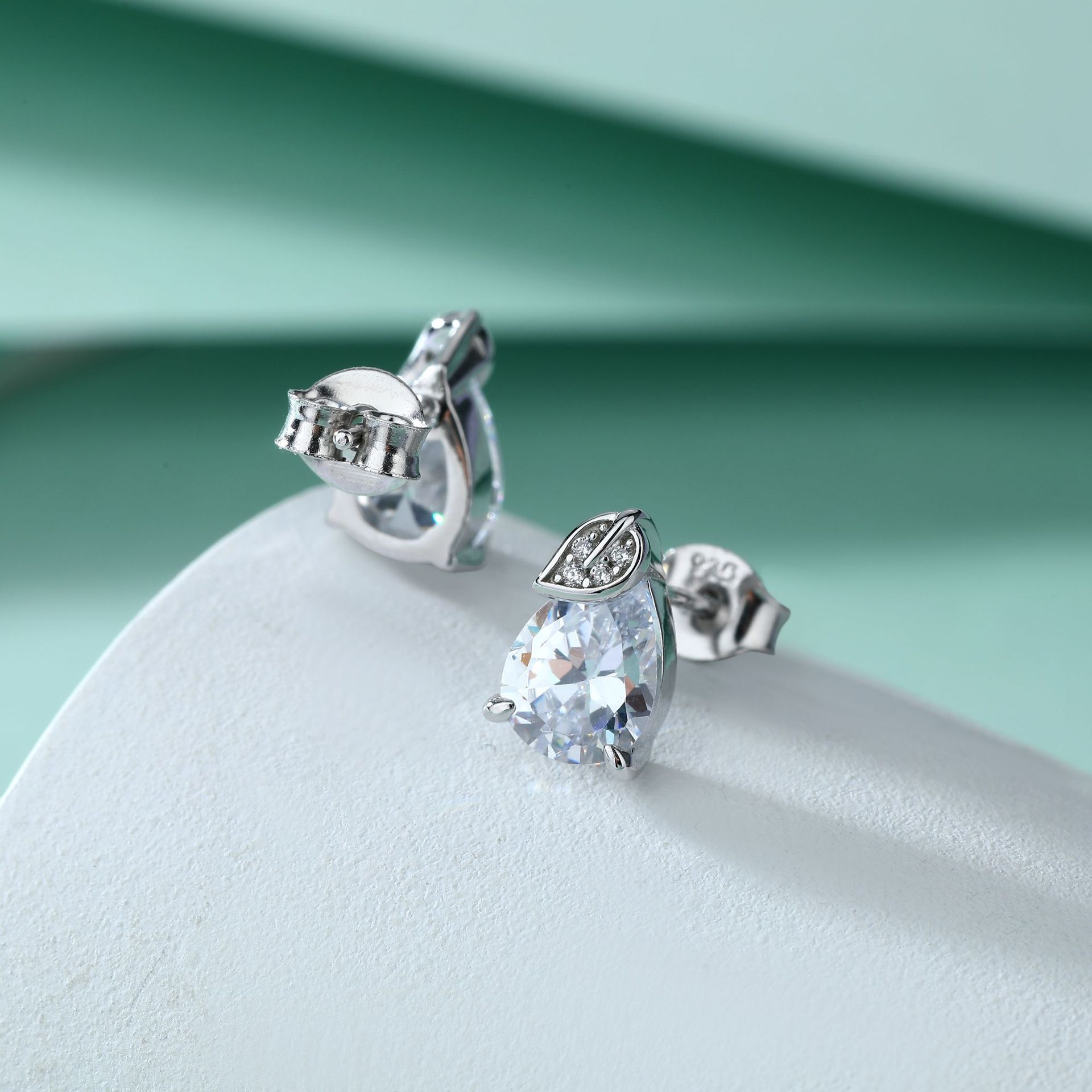 Simple pear-shaped zircon S925 sterling silver stud earrings
