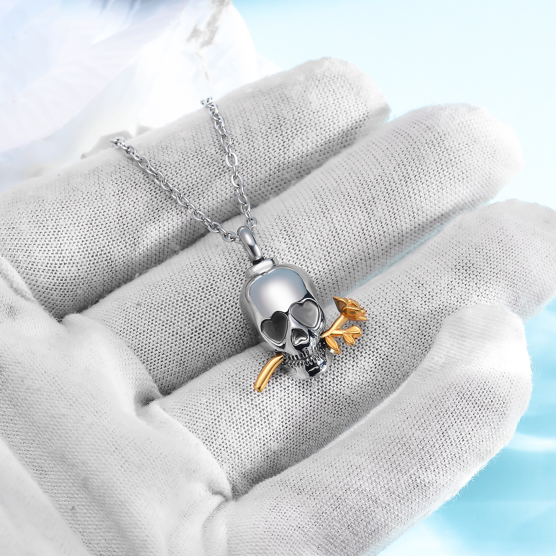 Skull Urn Necklaces Flower Pet Human Ashes Locket Necklace Cremation Memorial Pendant Keepsake Jewelry