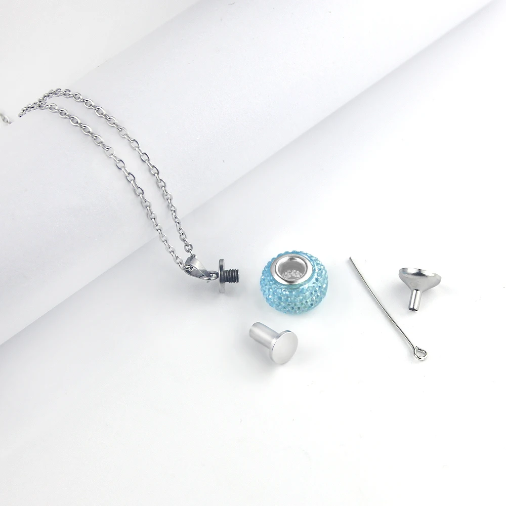 Cremation jewelry Stainless steel cylindrical steel necklace pendant with shiny pet urn perfume bottle commemorative jewelry