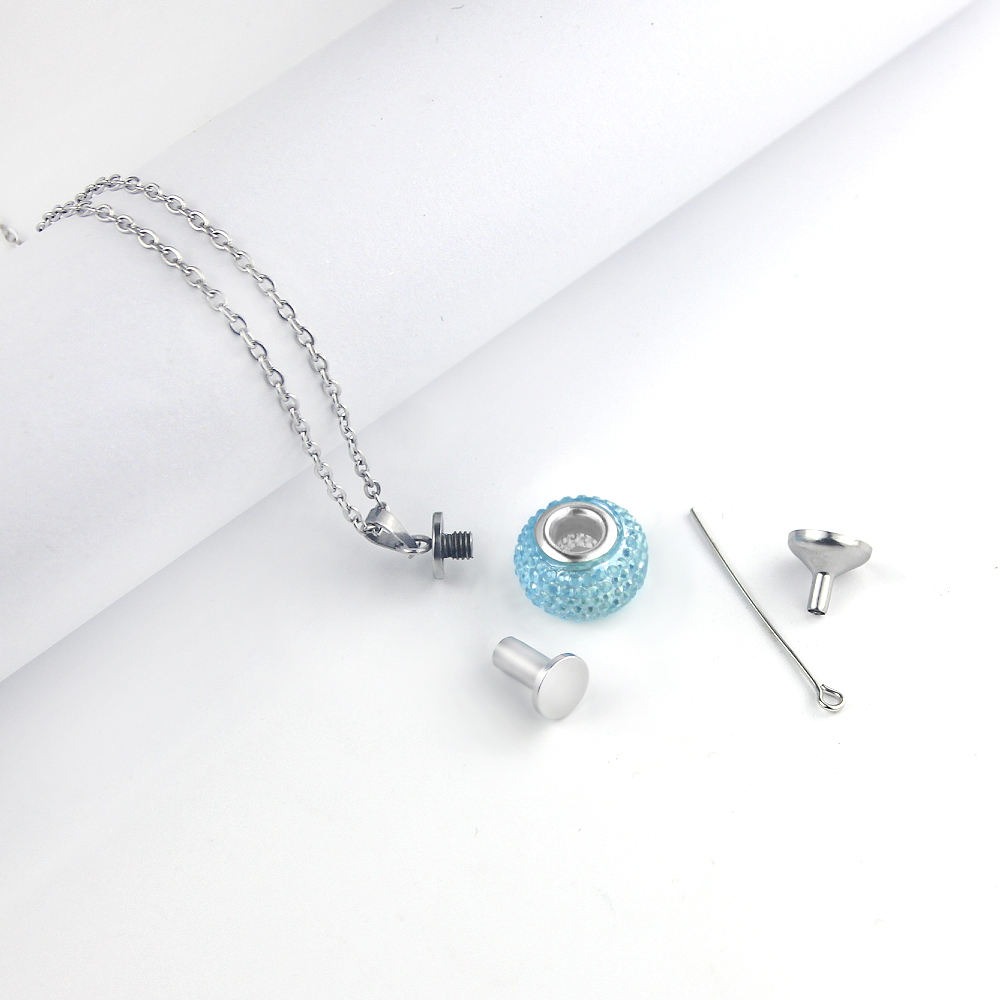 Stainless Steel Circle Eternity Memorial Urn Necklace Blue gemstone lantern Cremation Jewelry Pendant Necklaces for ashes quantity