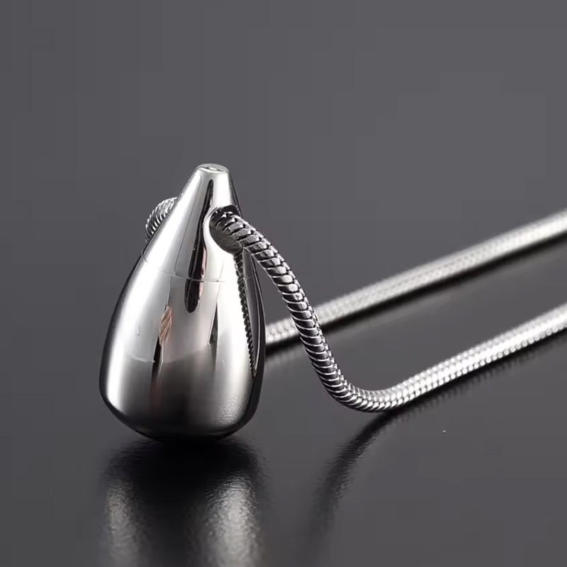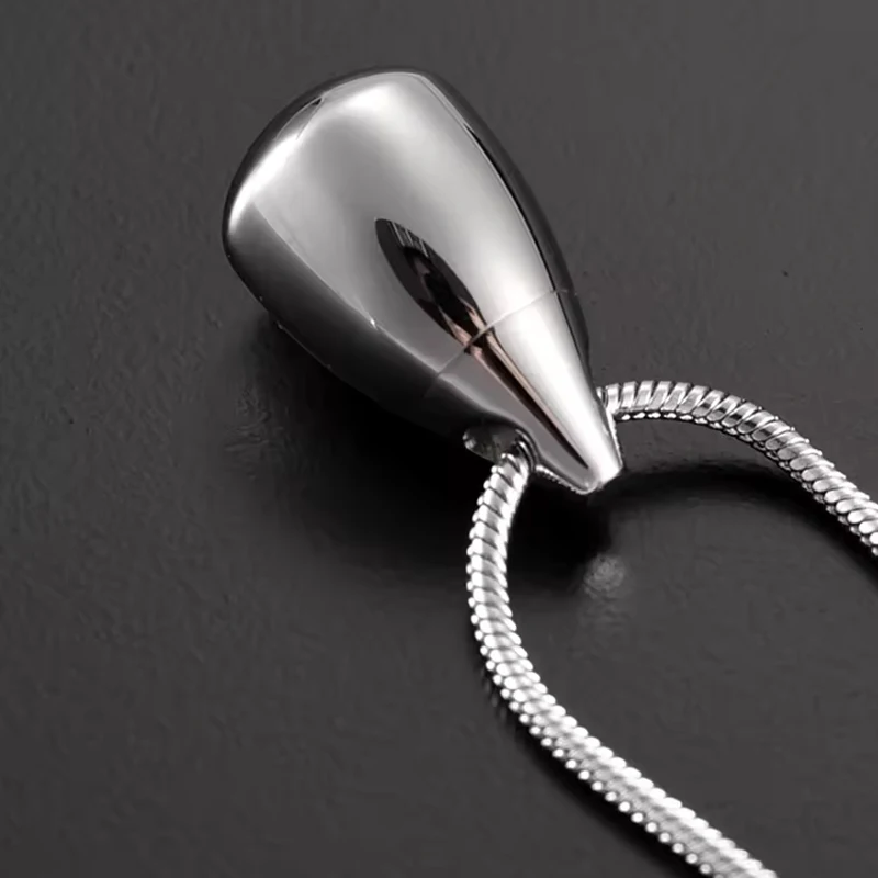 Stainless steel high polished teardrop urn cremation pendant commemorative necklace ashes rack, used for human souvenir jewelry