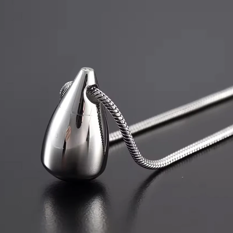 Stainless steel high polished teardrop urn cremation pendant commemorative necklace ashes rack, used for human souvenir jewelry quantity
