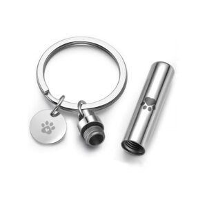 Stainless Steel Mini Silver Cylinder with Paw Print Cremation Memorial Keepsake-Human/Pet Memorial Ashes Urn Jewelry KeyChain