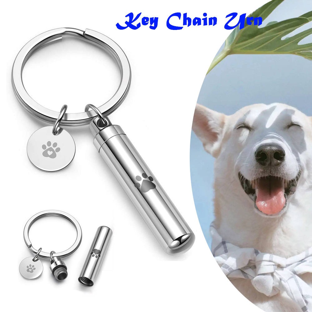 Stainless Steel Mini Silver Cylinder with Paw Print Cremation Memorial Keepsake-Human/Pet Memorial Ashes Urn Jewelry KeyChain quantity