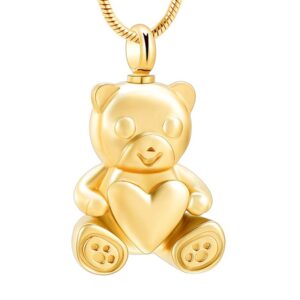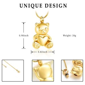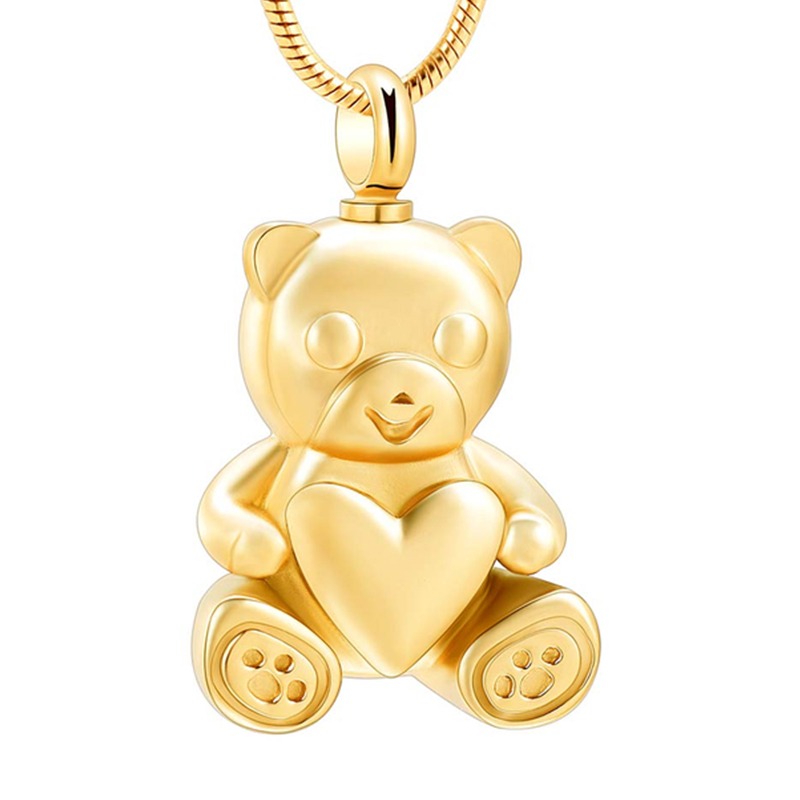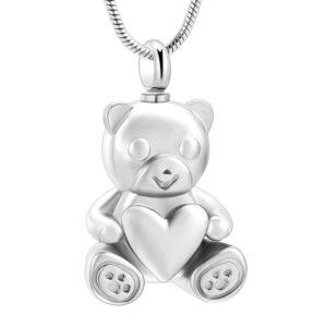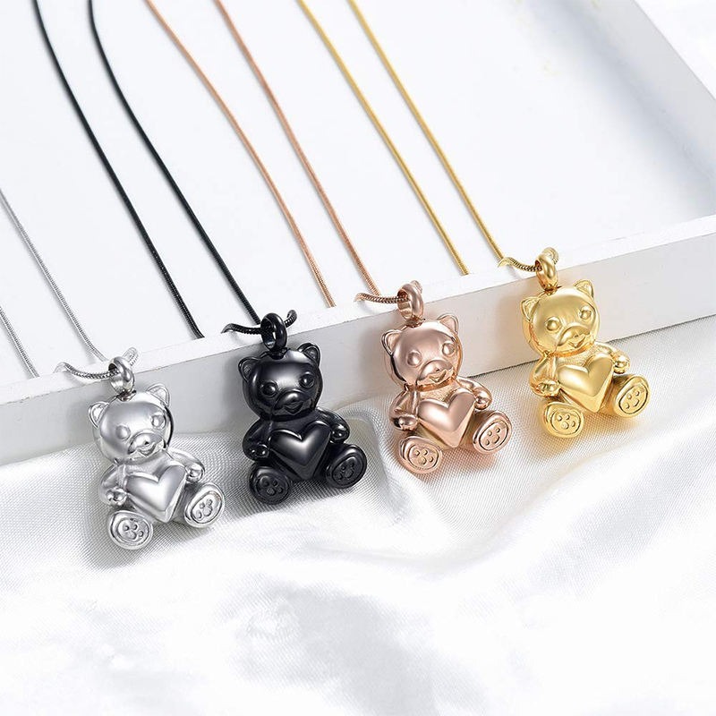 Stainless Steel Teddy Bear Pet Urn Pendant Memorial Ash Keepsake Cremation Jewelry Necklace for Ashes Locket Necklaces