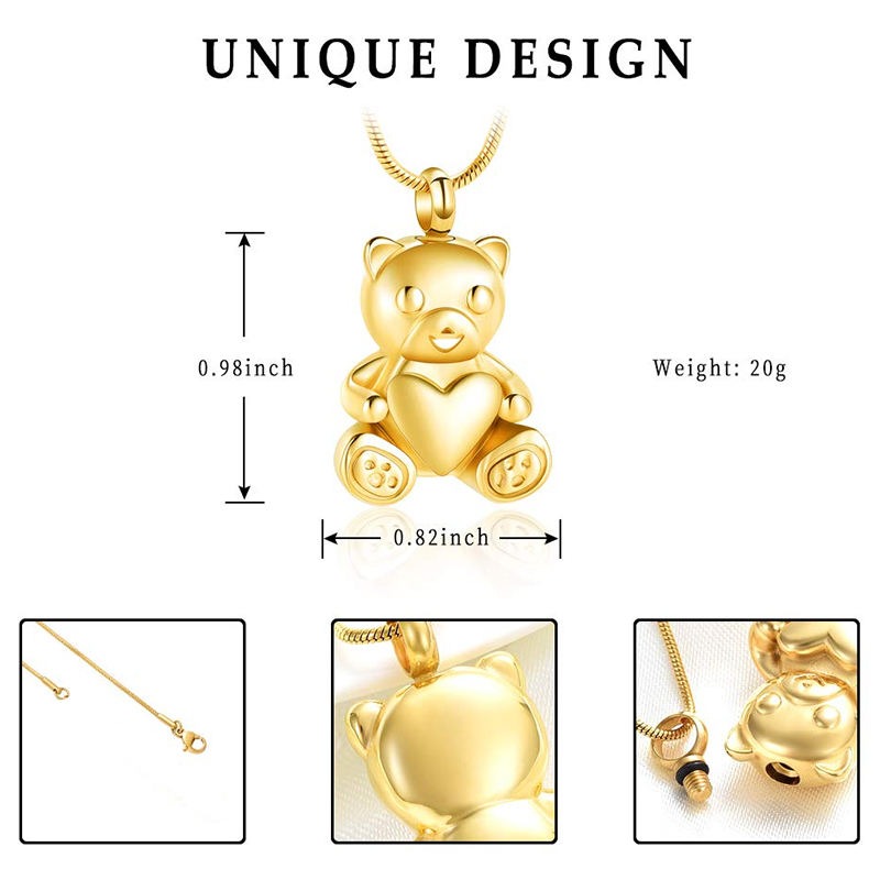 Stainless Steel Teddy Bear Pet Urn Pendant Memorial Ash Keepsake Cremation Jewelry Necklace for Ashes Locket Necklaces quantity
