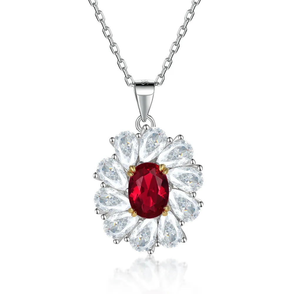 Sterling silver colored treasure jewelry set three-piece set ruby ring earrings silver necklace