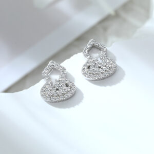 Sterling silver diamond-encrusted gourd earrings