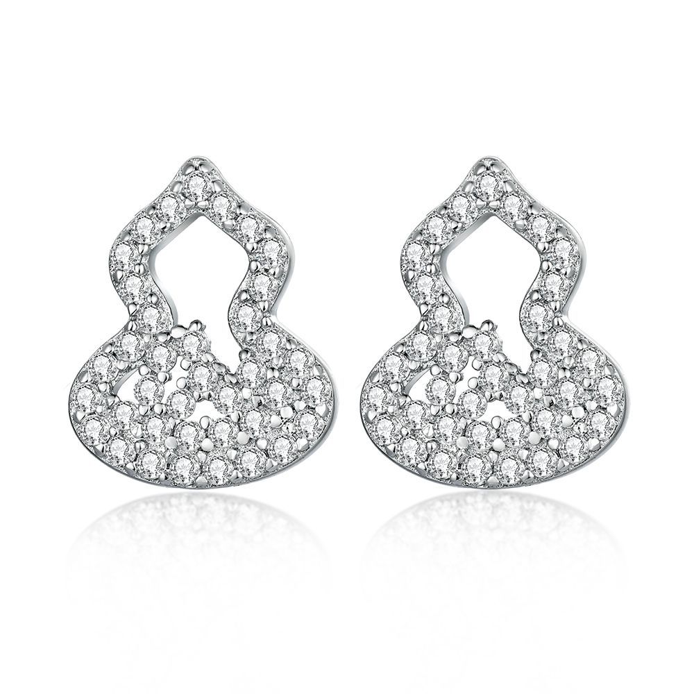 Sterling silver diamond-encrusted gourd earrings