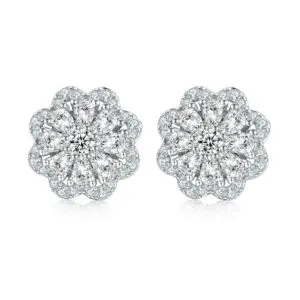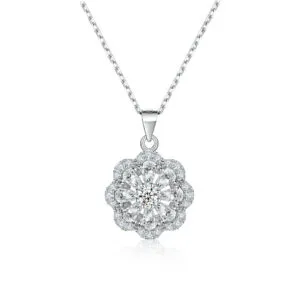 Sterling Silver Flower Ring S925 Silver Stud Necklace Jewelry Set