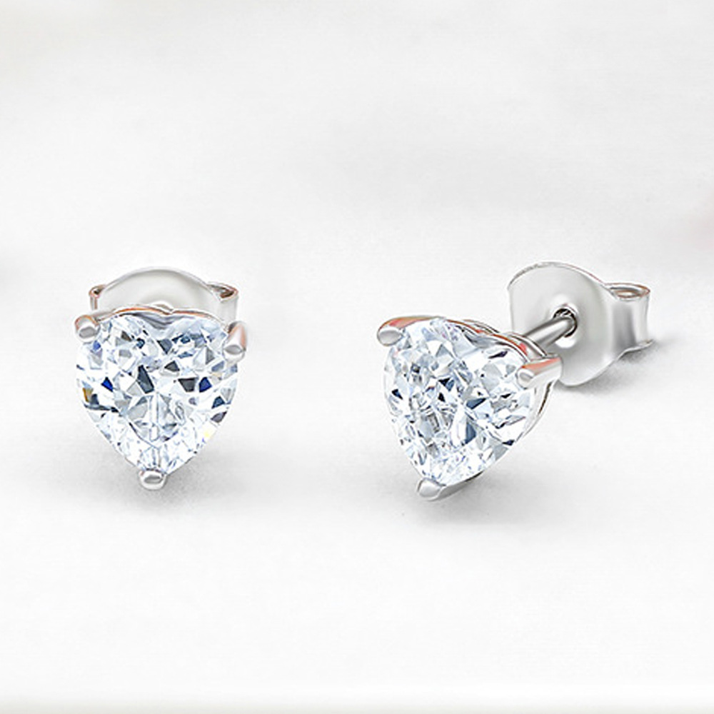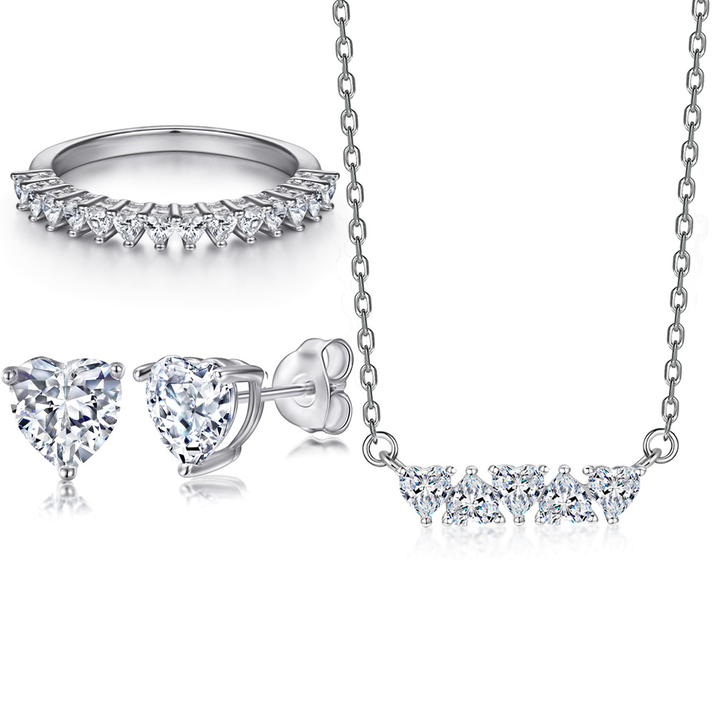 Sterling silver jewelry set simple heart zircon stud earrings ring women’s 925 silver necklace