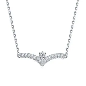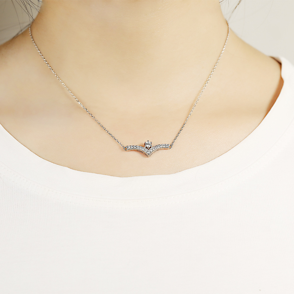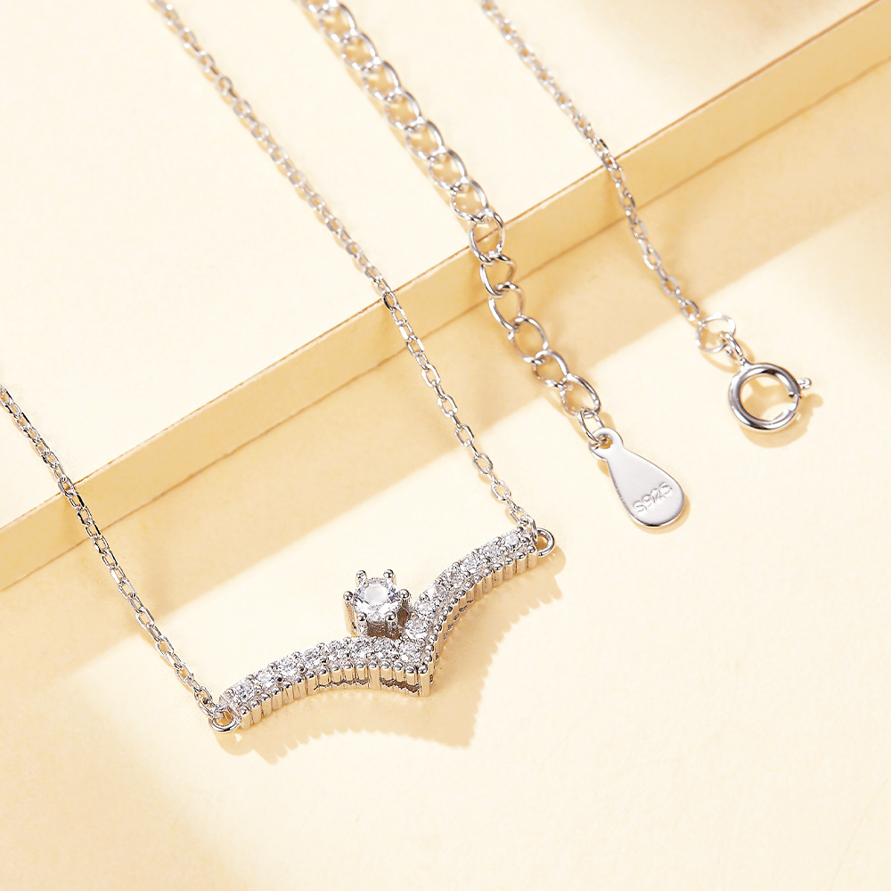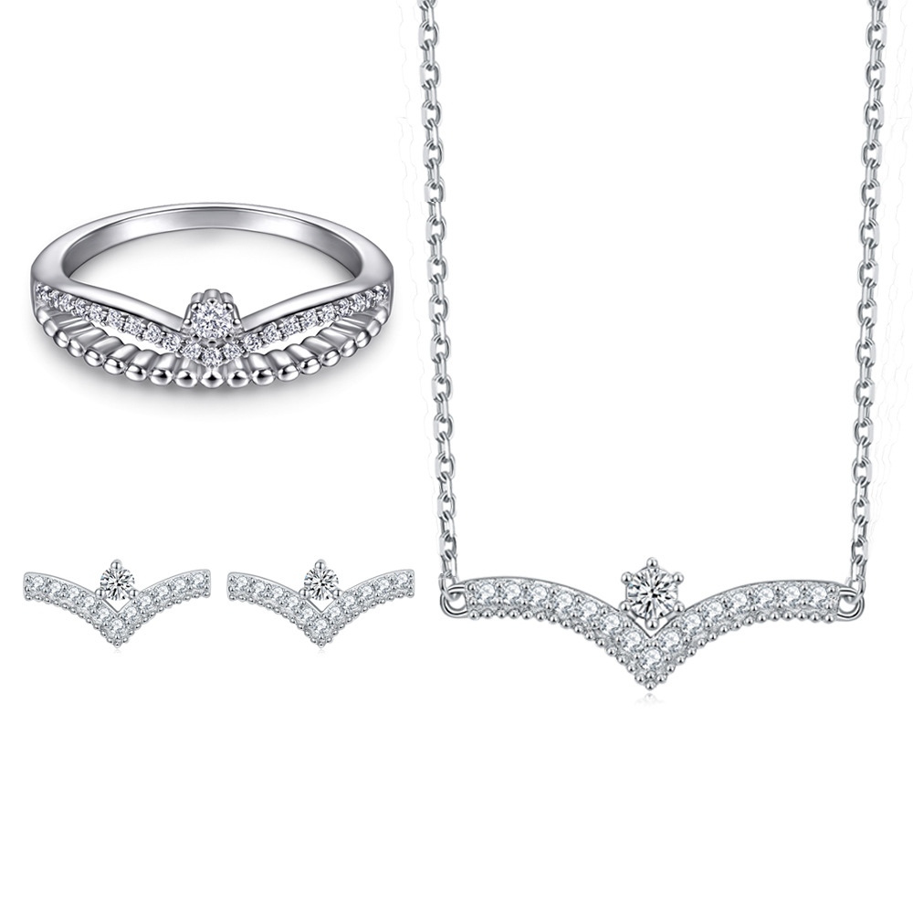 S925 Sterling Silver Jewelry Set of Three Crown Ring Stud Earrings Necklace Silver Jewelry Set