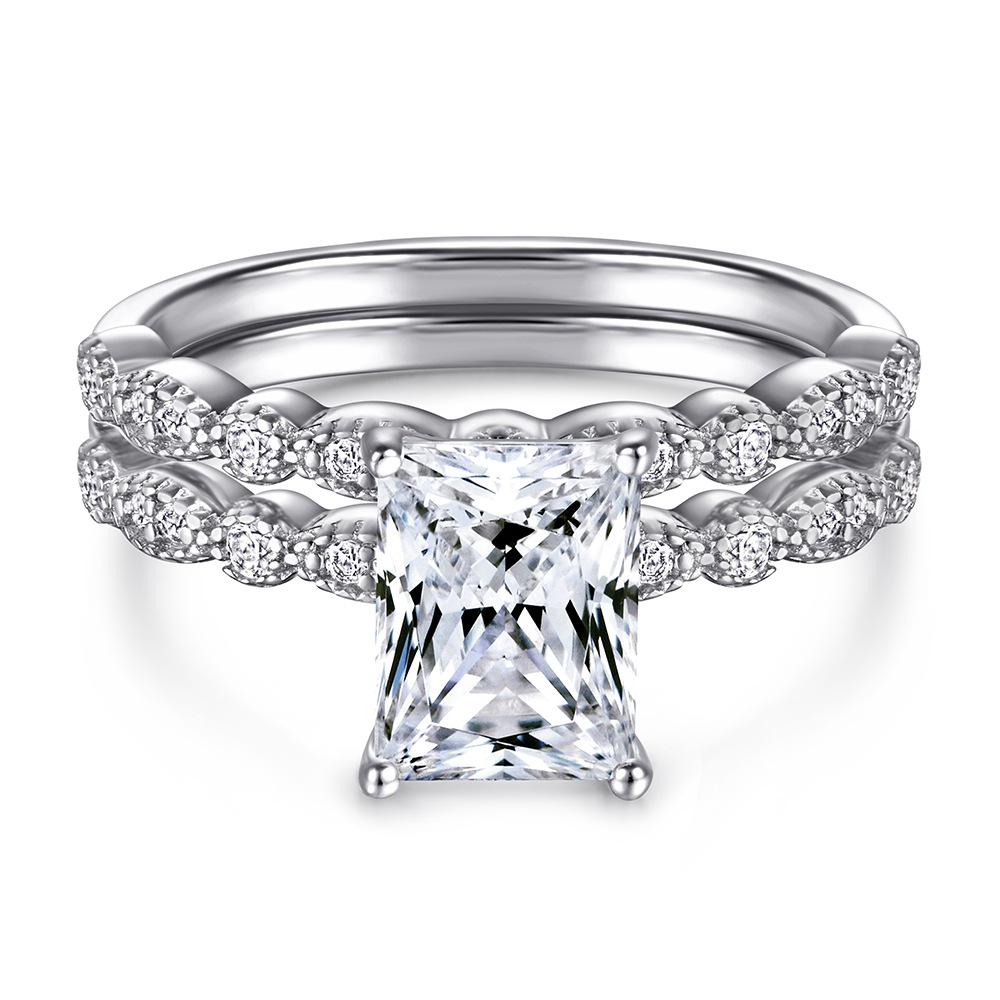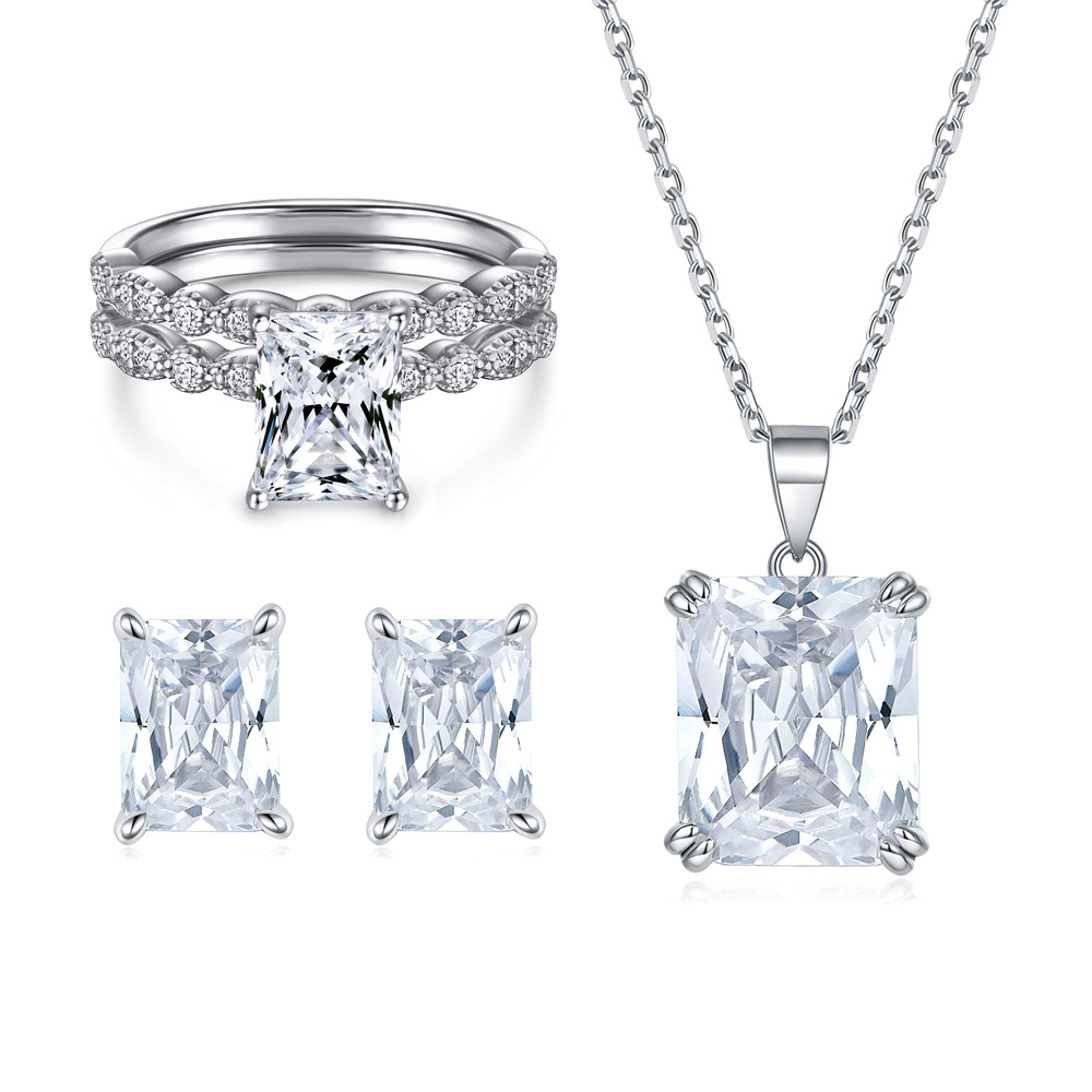 Sterling Silver Square High Carbon Diamond Ring S925 Zircon Earrings Square Crystal Necklace Jewelry Set